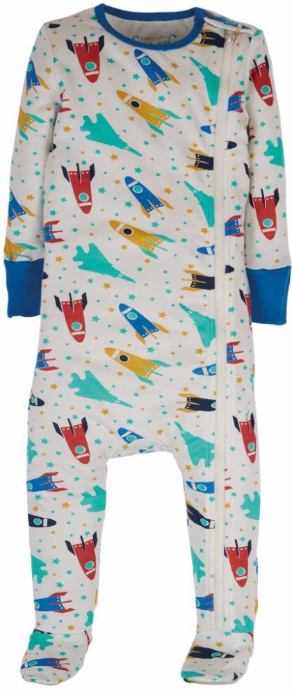 Dětský overal na spaní na zip Barevné závodní rakety Frugi