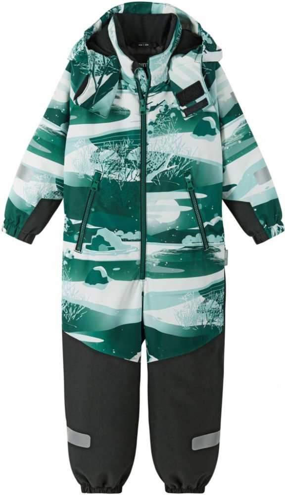 Dětská membránová zimní kombinéza Reimatec Kurikka je ušita z nepromokavého a zároveň prodyšného materiálu s povrchovou úpravou Bionic-Finish Eco. V zadní části kombinézy a na nohavicích od kolen dolů je použit materiál s vyšší pevností a odolností. Všechny švy jsou vodotěsné. Kombinéza má bezpečnou snadno odnímatelnou kapuci a vyšší stojací límec. Na předním dílu se po celé délce zapíná na zip s chráničem brady. Má dvě kapsy na zip. Vzadu v pase je stažena gumou a rukávy i nohavice má zakončené pružnými lemy. K nohavicím lze připevnit silikonová poutka pod boty. Na kombinéze je celoplošný potisk a výrazné reflexní detaily.Všechny švy vodotěsně zatavenéMateriál se zvýšenou odolnostíVelmi odolná spodní část, žádné švyHlavní materiál a materiál podšívky je certifikovaný společností bluesign®Obsahuje certifikovaná recyklovaná vláknaVodě a špíně odolná úprava BIONIC-FINISH®ECO bez fluorokarbonůHladká polyesterová podšívka s obsahem recyklovaných vlákenTermoizolační materiál Fellex® ze 100% recyklovaných polyesterových vláken je certifikovaný společností bluesign®Bezpečná, odnímatelná kapuceElastické manžetyElastický pás vzaduOdnímatelné, odolné silikonové pásky přes botyDvě kapsy na zipReflexní detailyMateriál: Hlavní: 100% polyester, PU zátěrPodšívka: 52% Polyester, 48% recyklovaný Polyester
