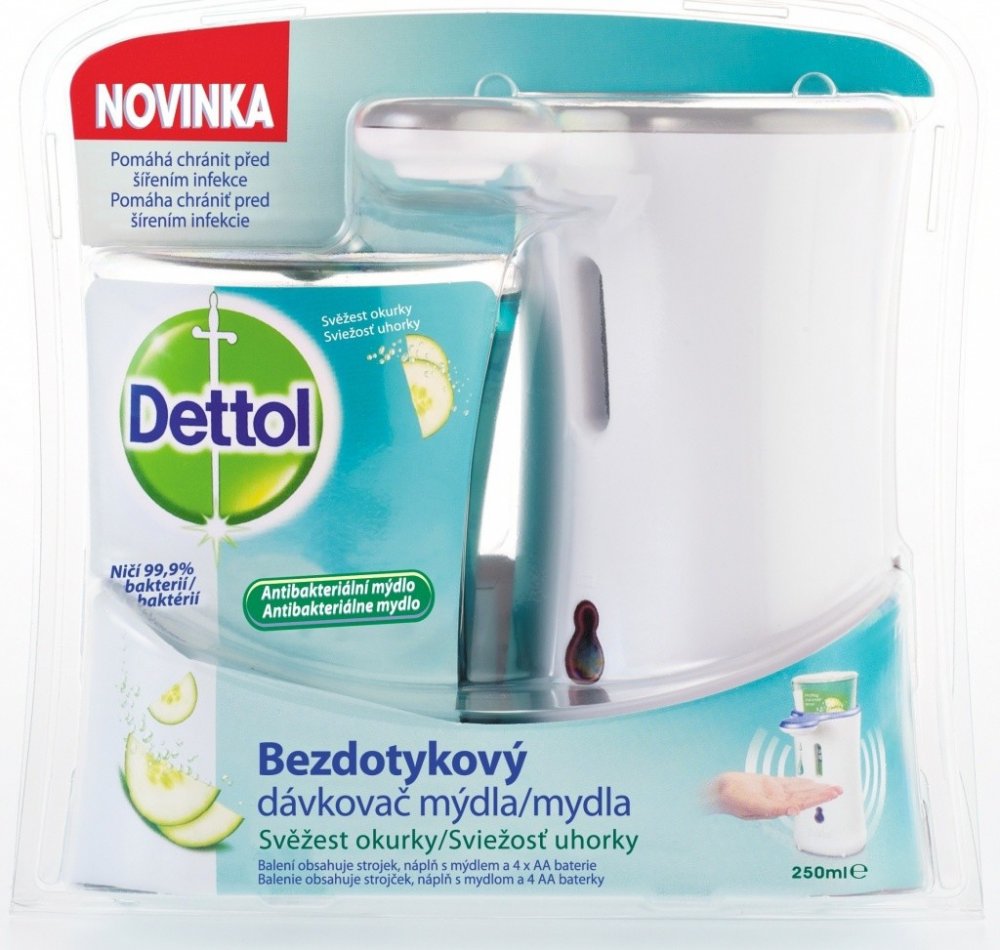 Dettol bezdotykový dávkovač mýdla pomáhá chránit ped šířením infekce. Ničí 99,9% bakterií.
