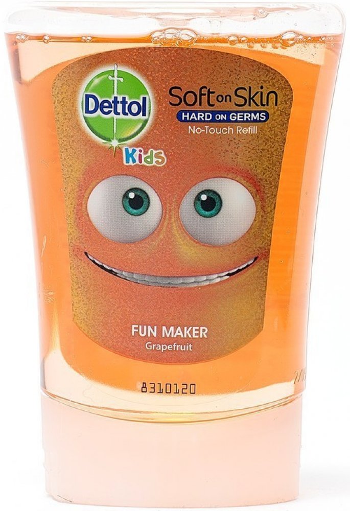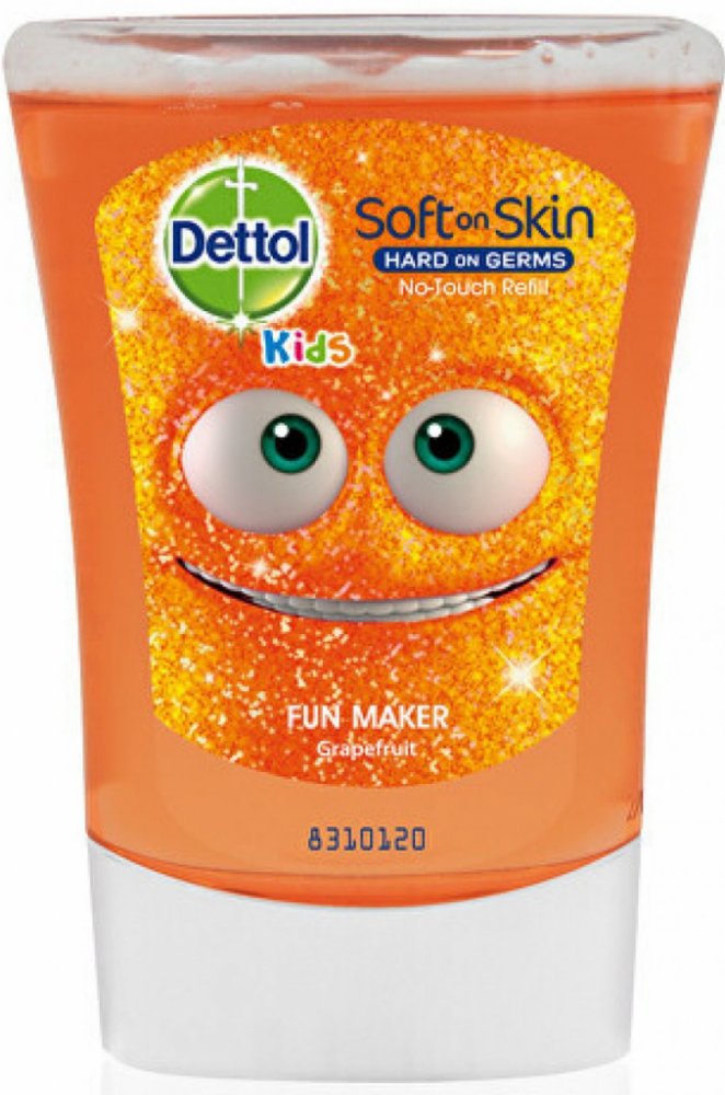 Náplň do bezdotykového dávkovače mýdla Dettol Kids Bavič s povzbuzující vůní grapefruitu. Konečně péče a ochrana před mikroby, kterou si vaše rodina zaslouží. Pomáhá udržovat vaše ruce zdravé. Složení účinně myje ruce, ale zároveň je jemné na kůži. Dermatologicky testováno. Vhodné na každodenní použití. Náplně jsou vhodné do bezdotykových dávkovačů mýdla Dettol.