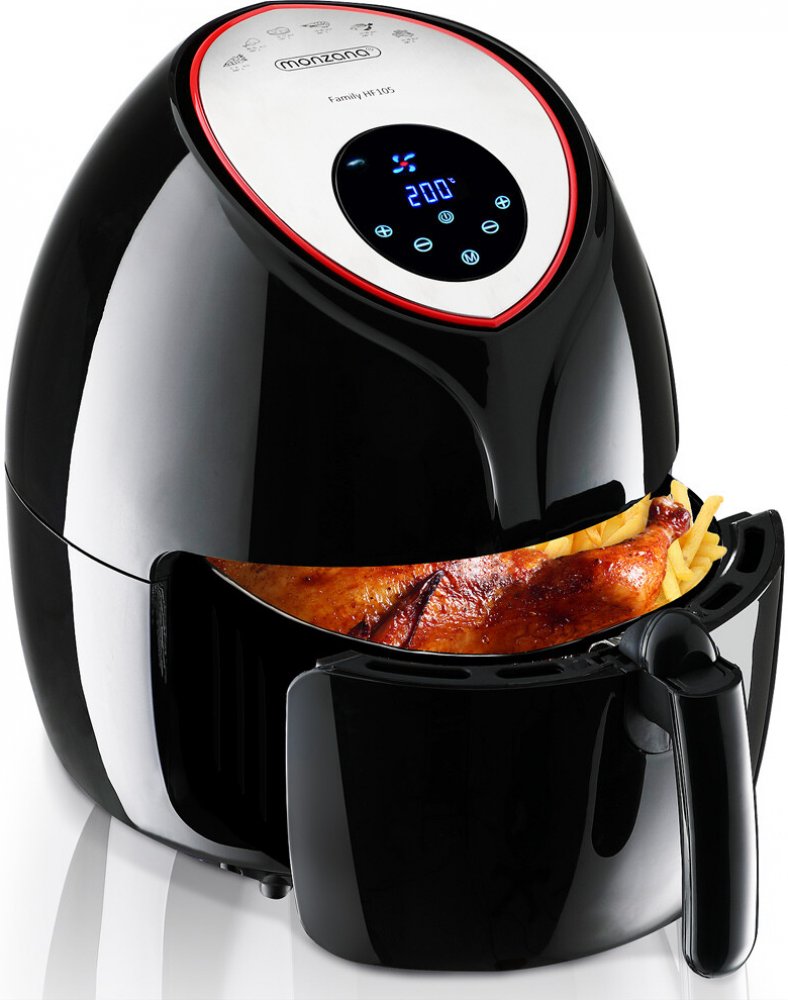 V horkovzdušné fritéze připravíte jídlo podobně jako v horkovzdušné peci, namísto tuku nebo oleje výhradně jen v horkém vzdušném proudu. Dokonce ani na hranolky není třeba olej k tomu, aby byly chutné a křupavé. Fritovací prostor pracuje nanejvýš efektivně a ihned se rozehřeje na provozní teplotu. Přitom spotřebuje fritéza málo energie a je tak efektivní cestou k šetrné přípravě jídla.