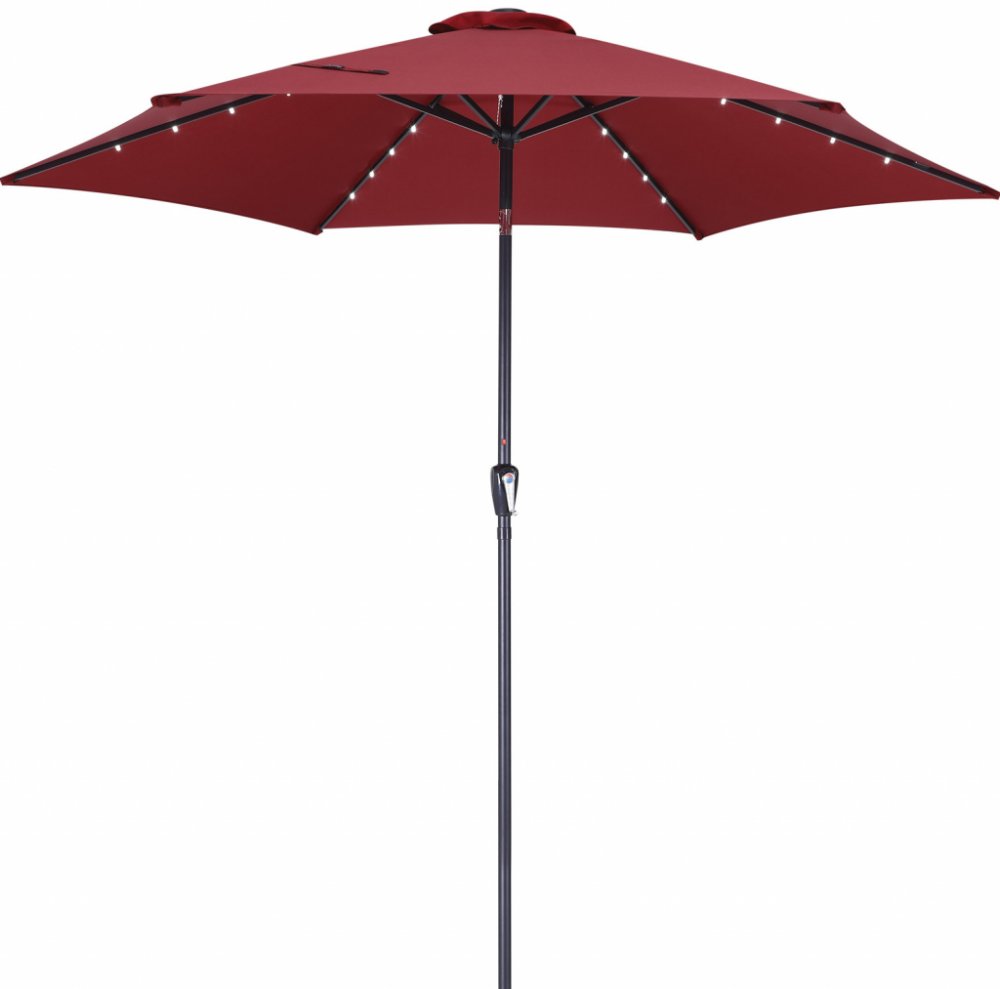 Slunečník lze rychle otevírat a zavírat díky funkci hladké kliky. Tyč je vyrobena z lehkého hliníku a lze jej rozložit na 2 části pro snadné skladování a přepravu. 24 LED diod poskytuje příjemnou atmosféru. Světlo lze ovládat pomocí malého a nenápadného přepínače zapnutí/vypnutí na tyči slunečníku. Slunečník má potah vyrobený z vodoodpudivé látky, také má boční volán a vrchní stříšku.