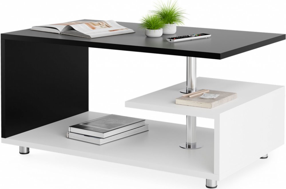 Moderní konferenční stolek je stylovým doplňkem, který se snadno kombinuje s jakýmkoli typem interiéru. Vyniká otevřeným dizajnem a čistými liniemi, čímž dodává obývacímu pokoji moderní vzhled. Nerezová tyč, která spojuje stolové desky vertikálně, vytváří elegantní a lehký vizuální dojem. Tento praktický stolek nabízí dostatek úložného prostoru na vícero úrovních pro knihy, občerstvení či dekorace a má nosnost až 50 kg. Povrch stolových desek je odolný vůči poškrábání, odpuzuje vodu a snadno se udržuje – stačí jej jednoduše otřít vlhkým hadříkem. Čtyři výškově nastavitelné nerezové nožičky s pogumovanými ochrannými prvky chrání podlahu a zajišťují stabilitu. Montáž stolku je rychlá a snadná.
