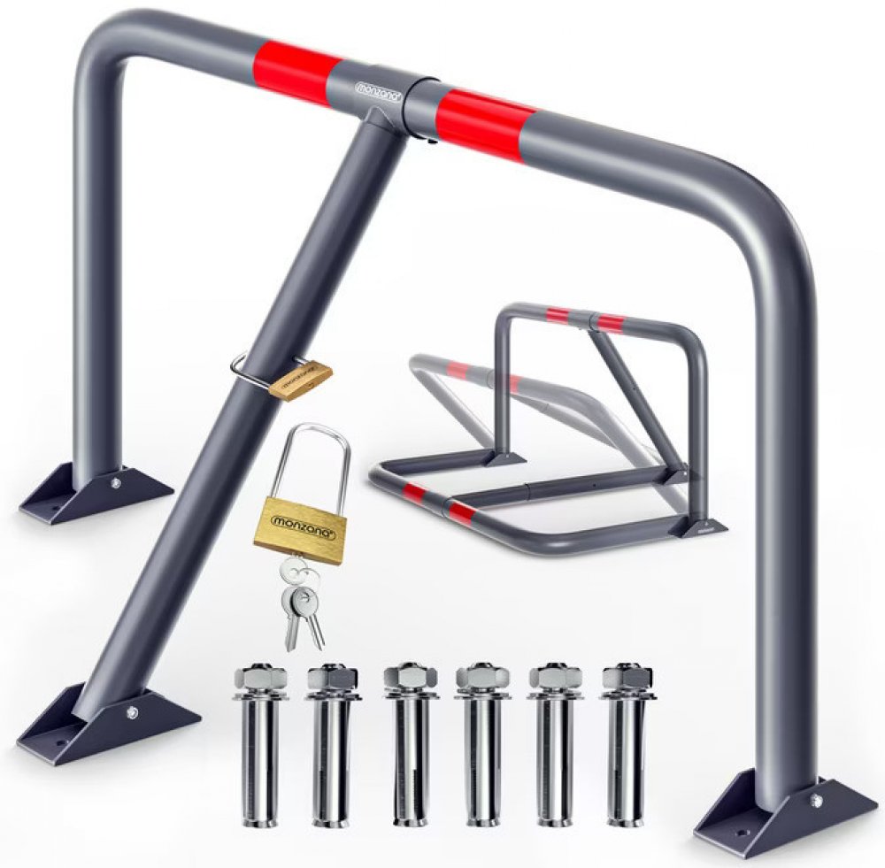 Naše parkovací zábrana je vyrobena z vysoce kvalitní práškově lakované oceli s matným vzhledem. V porovnání s pozinkovaným nebo lakovaným povrchem je povrch s práškovým nástřikem výrazně odolnější vůči povětrnostním vlivům. Tato masivní parkovací zábrana nabízí spolehlivou ochranu vašeho parkovacího místa nebo příjezdové cesty před nezvanými hosty. Kompletní upevňovací materiál a 3 klíče na sloupek závory jsou součástí balení. Základní deska je předvrtaná, což umožňuje rychlé a snadné připevnění k zemi pomocí 6 dodaných zemních kotev. Předvrtané tříbodové zapínání umožňuje rychlou a snadnou instalaci na pevné povrchy. Pevná kovová konstrukce zaručuje dlouhou životnost a reflexní pásky dobrou viditelnost ve dne i v noci.