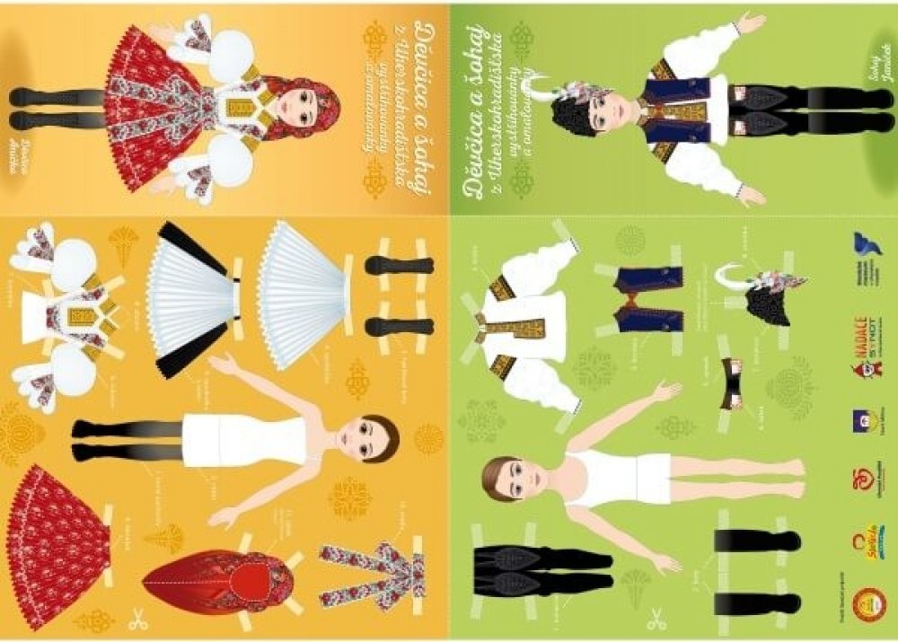 Originální vystřihovánka a omalovánka v jednom - výsledkem vaší zhruba hodinové práce bude dvojice v kroji z Uherskohradišťska - děvčica a šohaj.