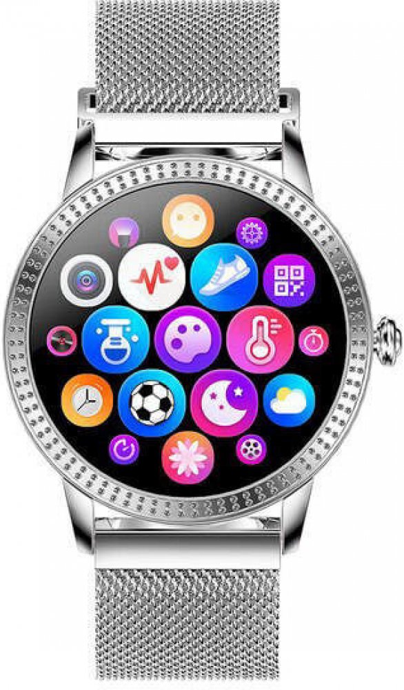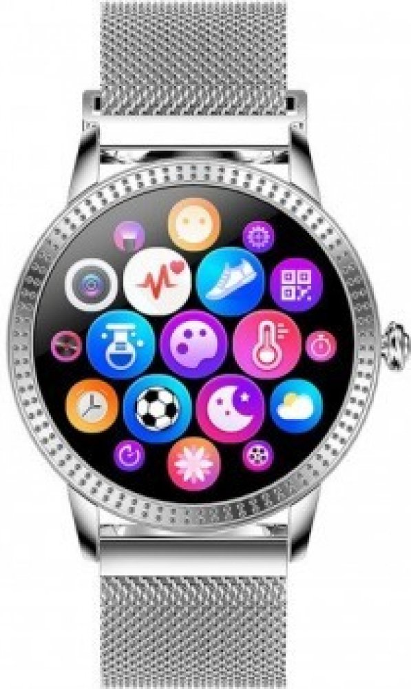Fitness náramek Deveroux CF18 Pro ve stříbrné barvě disponuje 1,08" kulatým IPS displejem a množstvím funkcí. Ultra tenká konstrukce přispívá k pohodlnému nošení během celého dne. Tloušťka je pouze 8,9 mm. Možnost nastavení vzhledu ciferníku podle vlastní preference, včetně fotografie. Podporuje funkci krokoměr, budík, stopky, výpočet kalorií, měření vzdálenosti, spánkový režim, měření tepové frek...