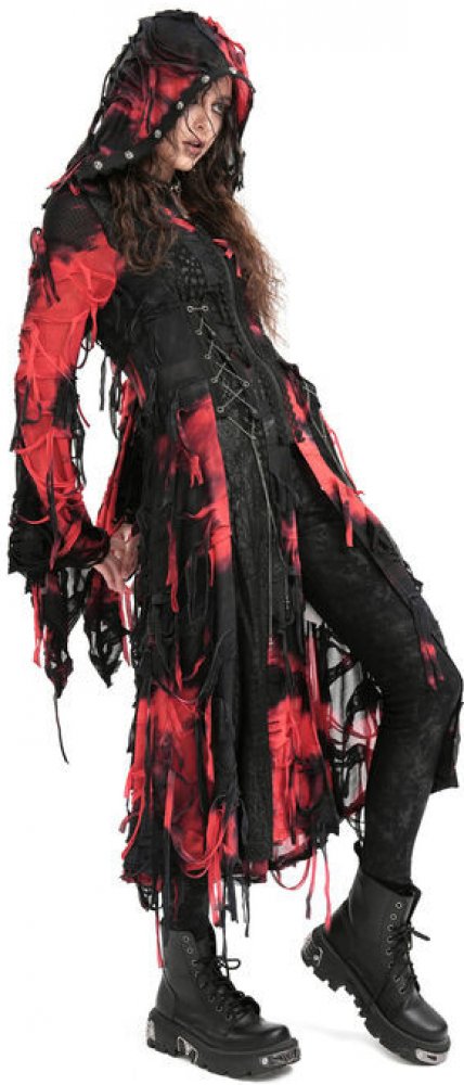 kabát DEVIL FASHION Black and Red Gothic S dámský kabát.