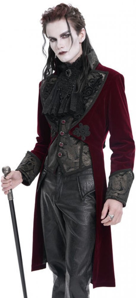 kabát DEVIL FASHION Wine Red Retro Gothic L pánský kabát.