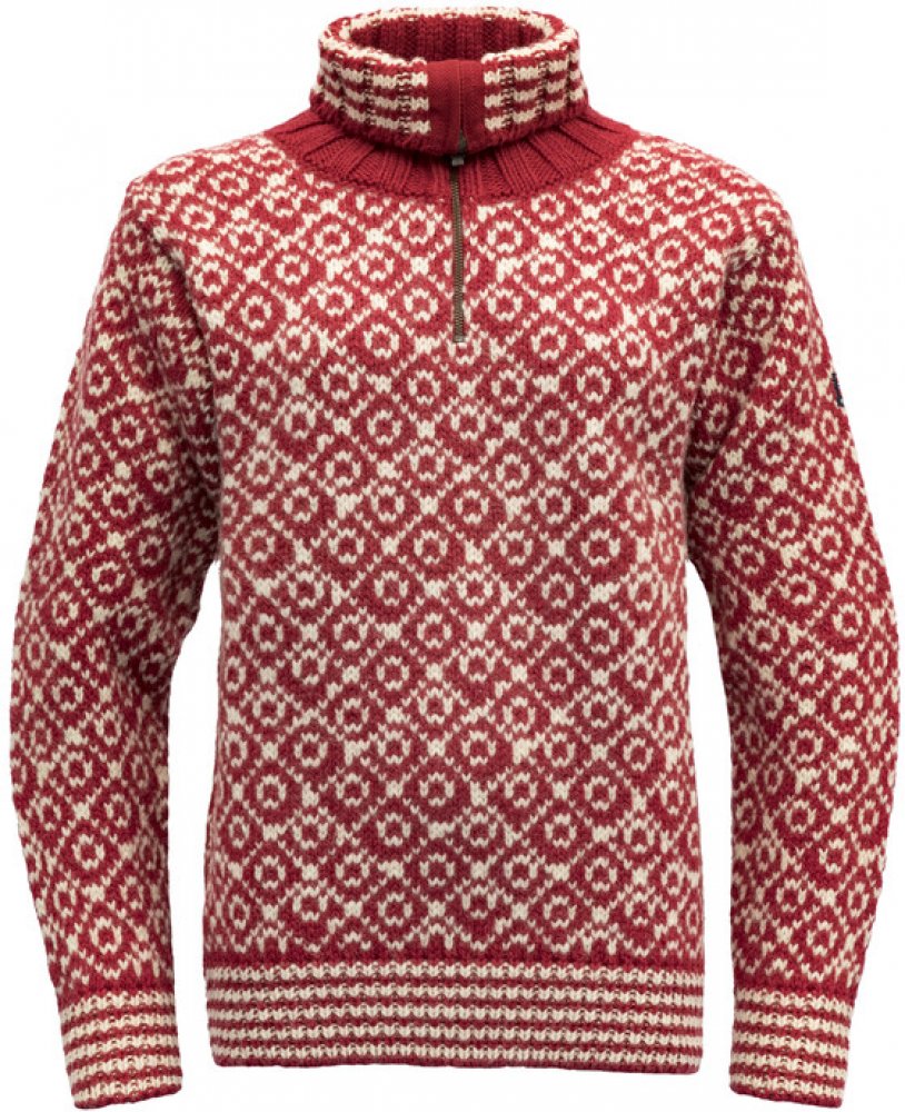 Devold svetry červená s dlouhým rukávem s rolákem s rolákem