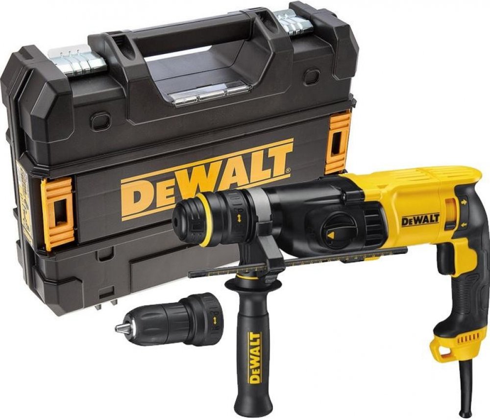 Vypnutí rázů umožňuje vrtání do dřeva, oceli a keramiky a také šroubování. Velký příklepový mechanismus poskytuje vysoký výkon a menší namáhání důležitých komponentů, což zaručuje vyšší odolnost. Mechanická spojka eliminuje náhlé momentové reakce, které mohou vznikat při zaseknutí nástroje. Elektronická regulace otáček zaručuje maximální ovladatelnost při jakékoli aplikaci. Ergonomický design zadní rukojeti s gumovým povrchem zaručuje vyšší komfort při práci. Gumou pokrytá boční rukojeť zvyšuje komfort obsluhy. Oválný ergonomický průmyslový design umožňuje jednoduché a pohodlné ovládání při jakékoli práci. Zdokonalené utěsnění maximalizuje ochranu před vnikáním prachu a zaručuje dlouhou provozní životnost nářadí. Drážky pro výstup vzduchu zaručují ochranu zraku obsluhy. Držák nástrojů: SDS-Plus Příkon: 800 W Výkon: 640 W Energie rázu ( EPTA/2009 ): 2,8 J Otáčky naprázdno: 0 - 1 500 ot./min Úderů/min: 0 - 5 540 ú/min Max. průměr otvoru [beton]: 26 mm Max. průměr otvoru [vrtací korunka]: 65 mm Max. průměr otvoru [dřevo]: 30 mm Max.