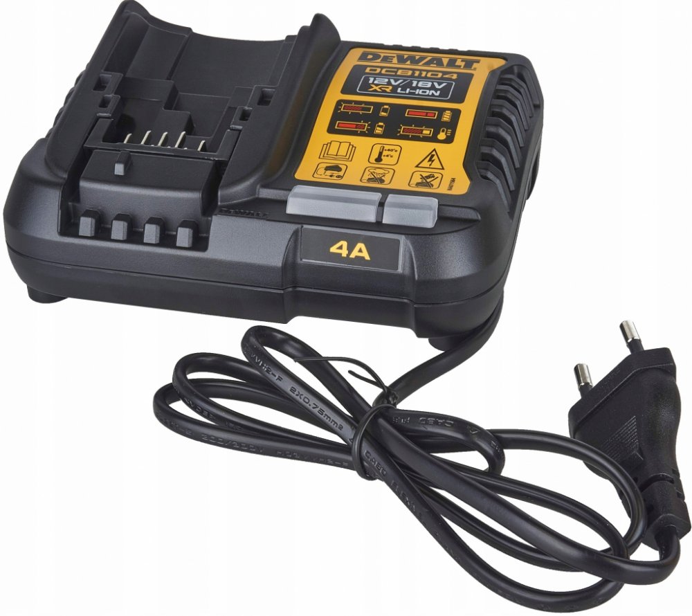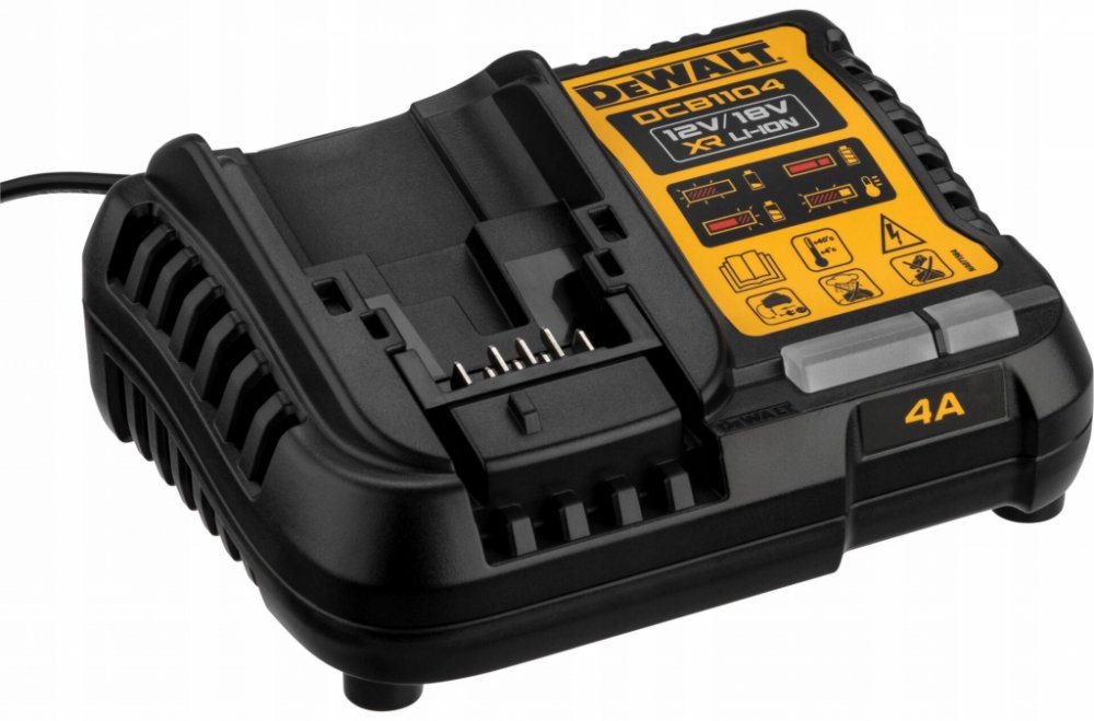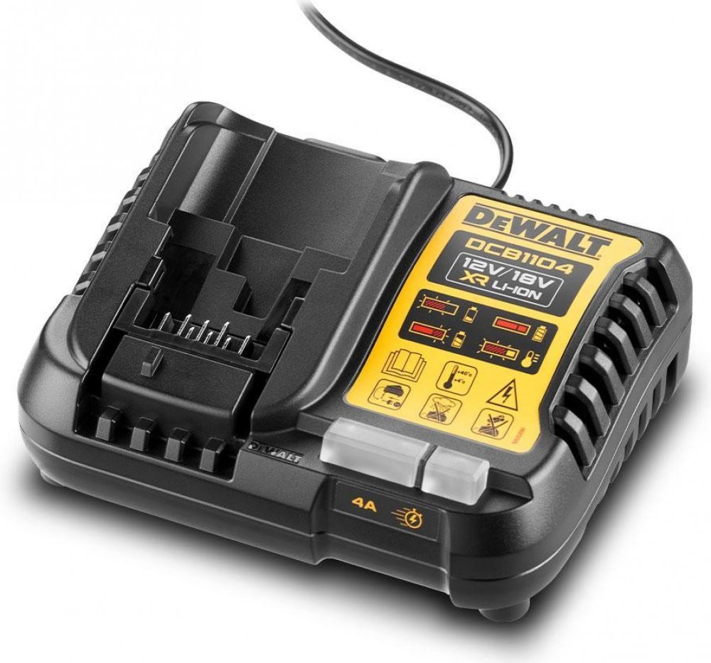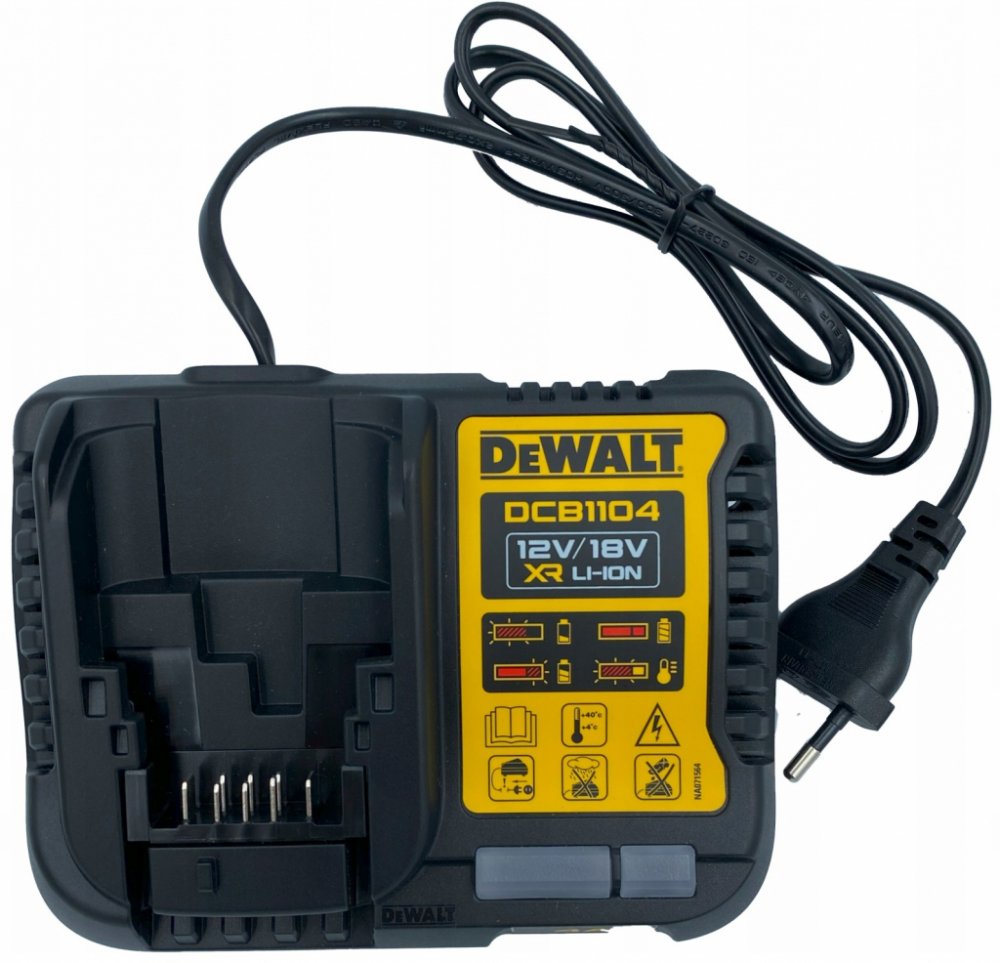 Nabíječka DeWALT DCB1104 je určena pro akumulátory DeWALT XR 10,8 V, 12 V, 14,4 V, 18 V a akumulátory FlexVolt 54 V. Disponuje vestavěným systémem kontroly napětí, který chrání baterie před poškozením a zajišťuje bezpečné nabíjení. Díky dvoustupňovému nabíjecímu systému DEWALT a diagnostickému systému s LED indikací je ideální pro profesionální použití. Model DCB1104 nahrazuje starší model nabíječky DCB115.