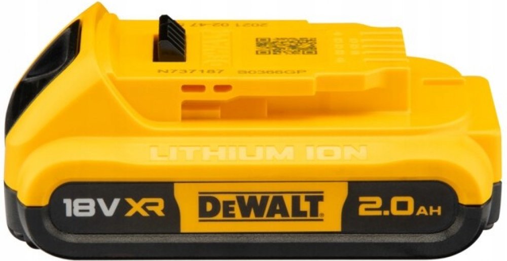 DeWALT XR Li-Ion baterie 18 V 2,0 Ah poskytuje spolehlivý výkon a delší dobu chodu při zachování lehké konstrukce. LED indikátor stavu nabití dává přehled o zbývající kapacitě. Lithium-iontová technologie bez paměťového efektu a s minimálním samovybíjením zajišťuje vyšší produktivitu a méně prostojů. Baterie je plně kompatibilní se všemi 18V nástroji DEWALT XR.