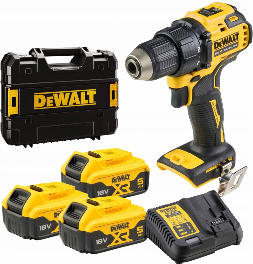 3× akumulátory XR Li-Ion 18 V, 5,0 Ah – S indikátorem stavu nabití pro přehled o zbývající kapacitě. Rychlonabíječka DCB1104 – Kompatibilní s XR akumulátory 10,8 V - 18 V. Kovový háček na opasek – Praktické zavěšení vrtačky během práce. Odolný kufr TSTAK – Pevný kufr pro bezpečné skladování a přepravu nářadí a příslušenství.