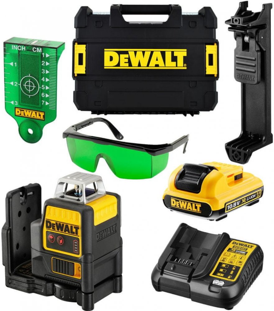 Samonivelační křížový laser se zelenými paprsky 2 x 360° DeWALT DCE0811D1G