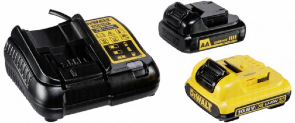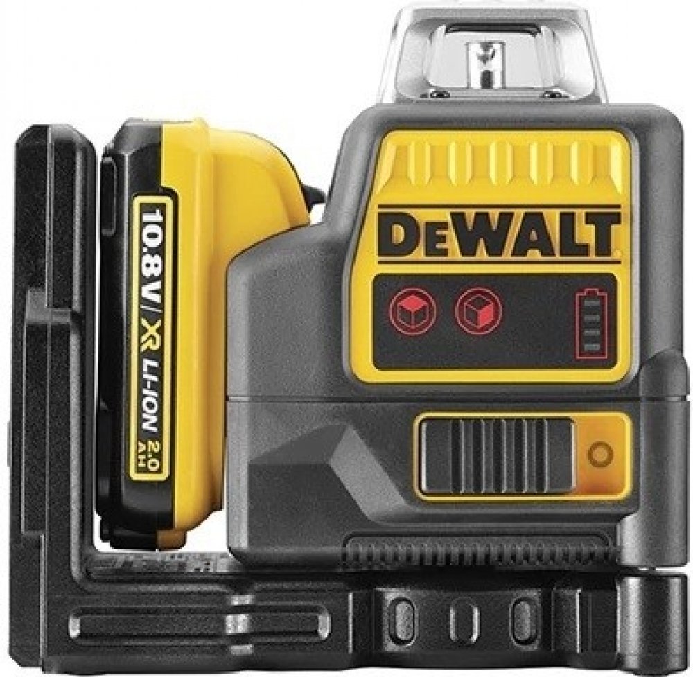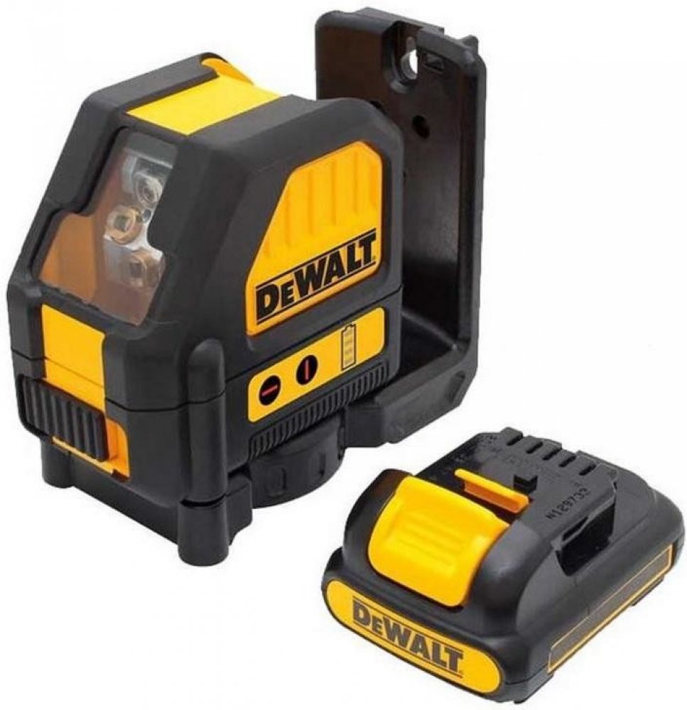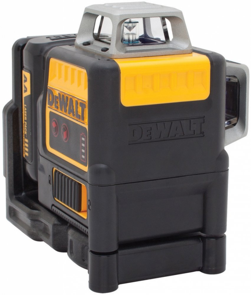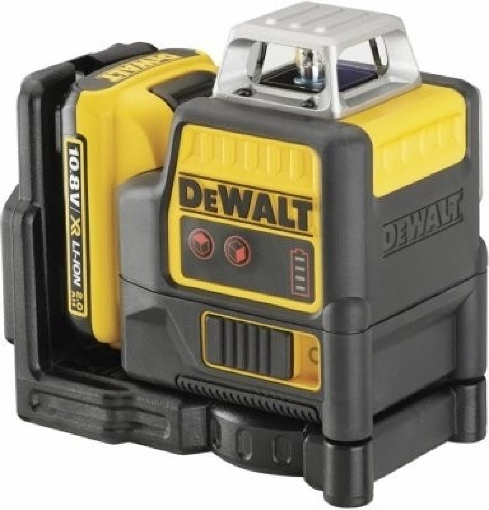 Samonivelační křížový laser se červenýmii paprsky 2 x 360° DeWALT DCE0811D1R, který simuluje funkci rotačního laseru.
