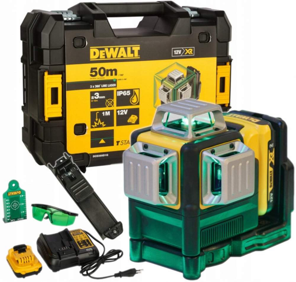 - DeWALT DCE089D1G18 MULTI KIT - sada s křížovým zeleným laserem 18V, 3x360 stupňů