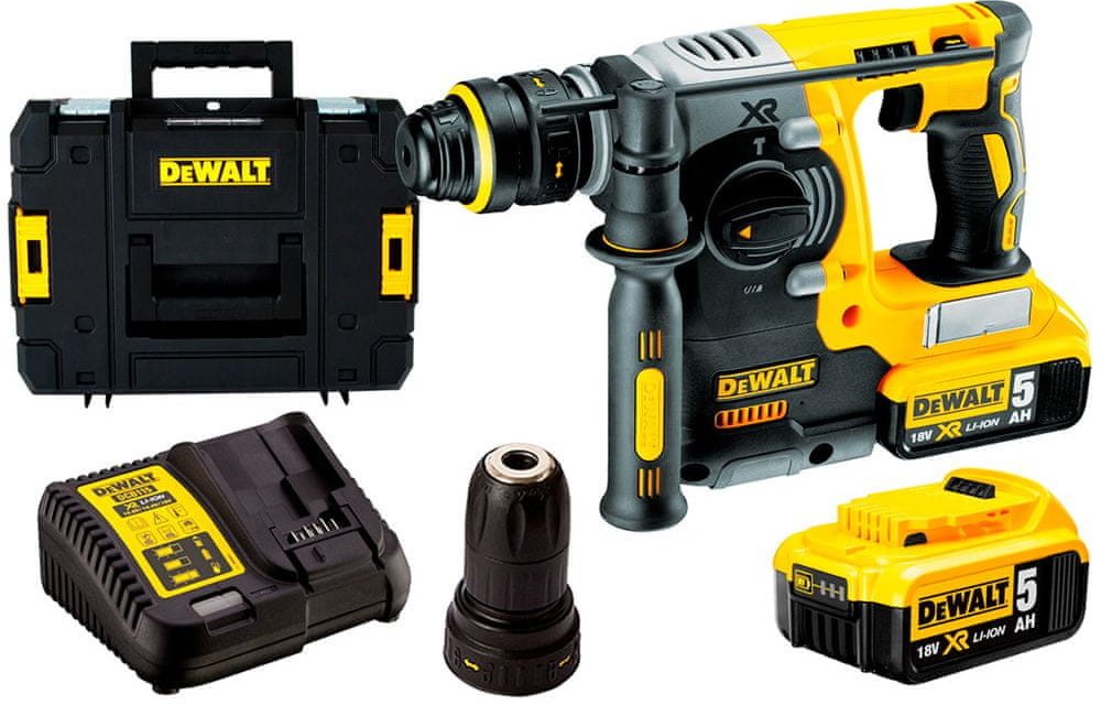 Kladivo je dodáváno s rychlovýměnným držákem nástrojů SDS-Plus a rychloupínacím sklíčidlem, což umožňuje provádět snadnou změnu mezi aplikacemi pro kladivo/vrtací kladivo a aplikacemi pouze pro vrtačku.