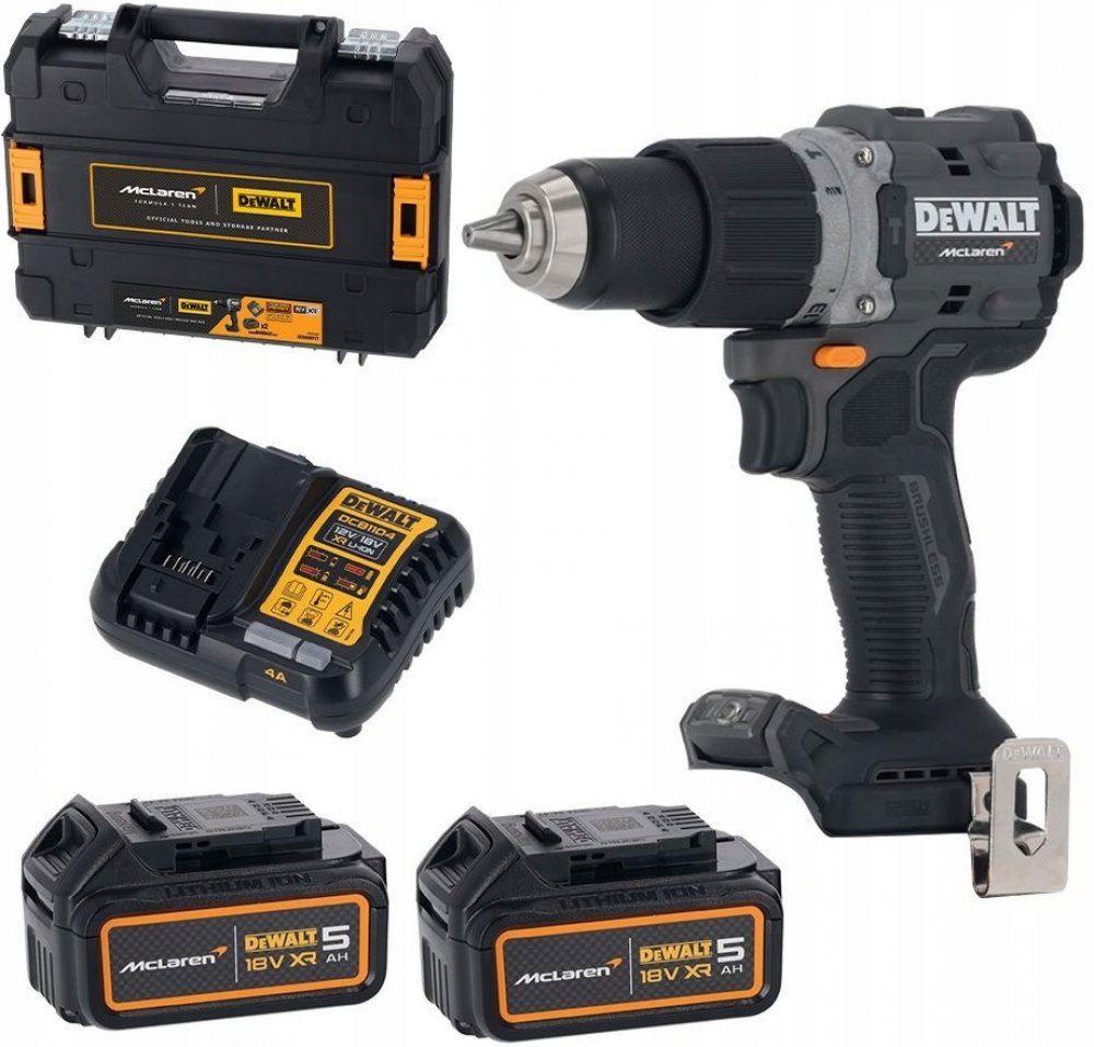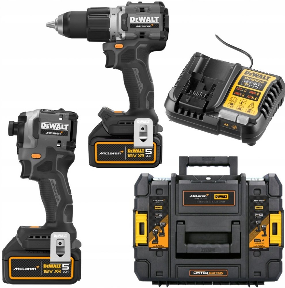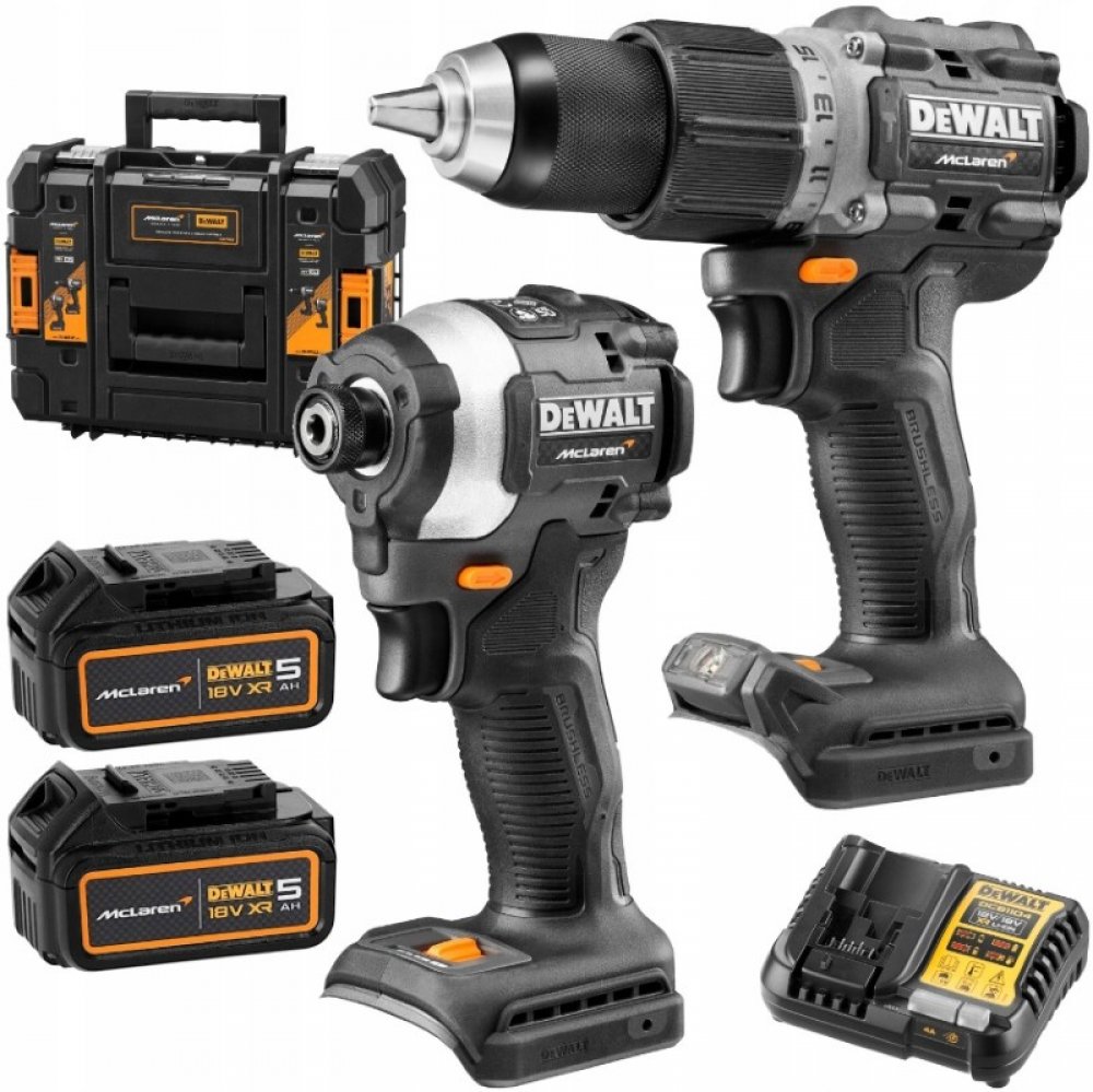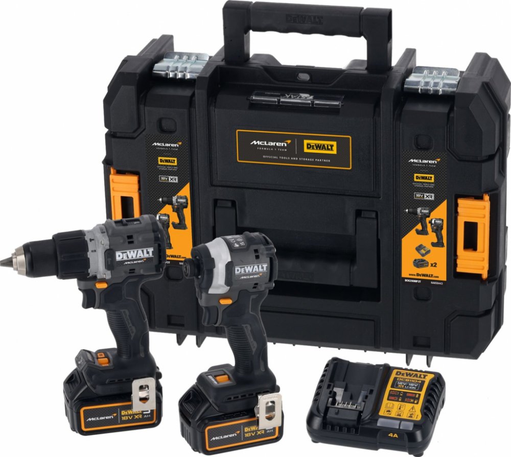 Dvojdílná sada nářadí DEWALT x McLaren F1 Team 18V XR s bezuhlíkovým motorem a 2 x 5 Ah baterií