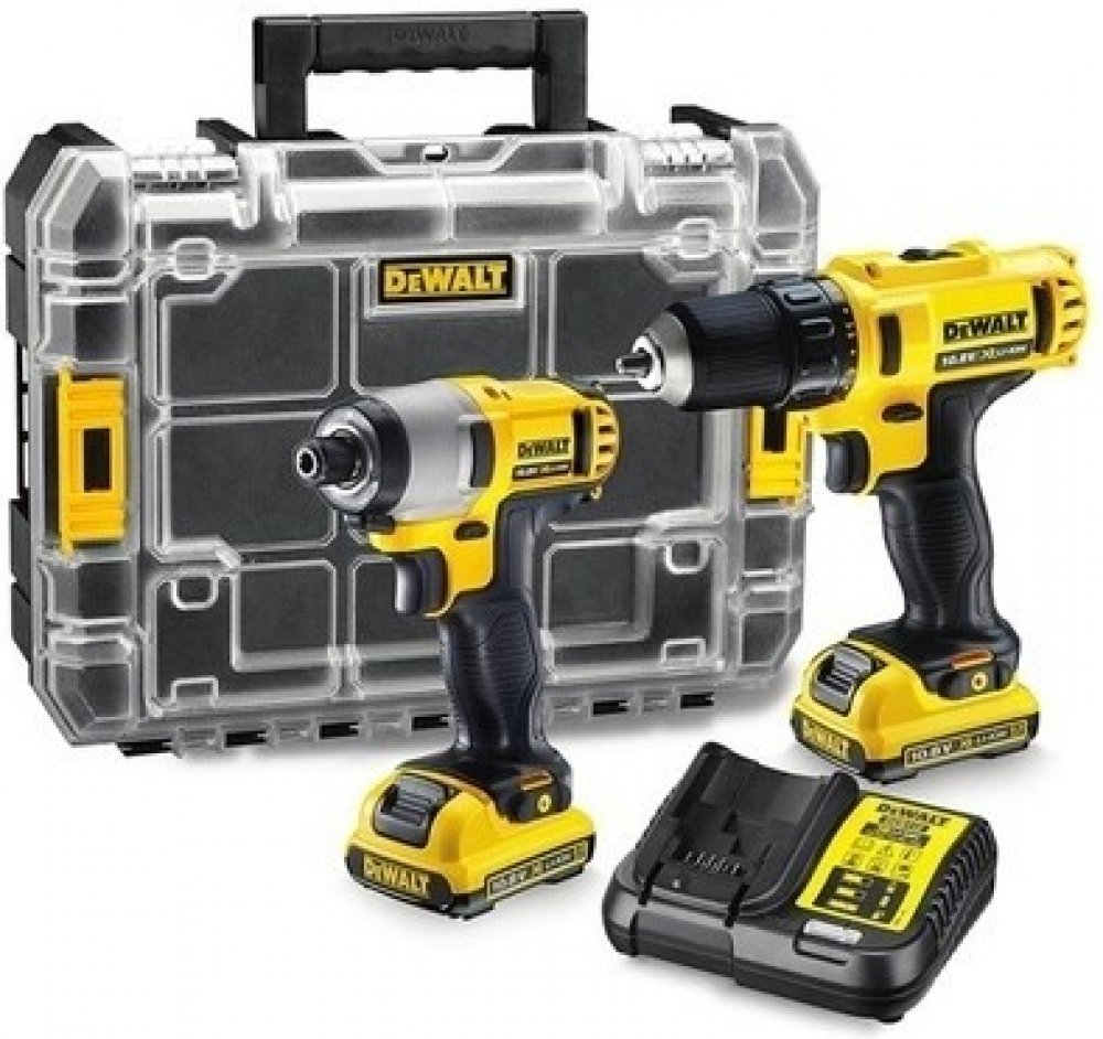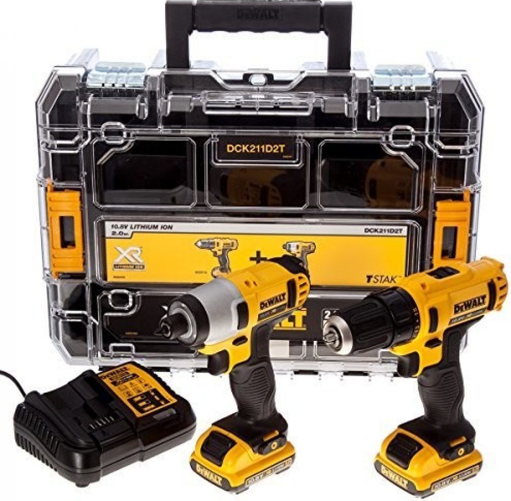 Praktická sada vrtačky a rázového utahováku DeWalt. Oba kusy disponují kompaktní lehkou konstrukcí, LED osvětlením pracovní plochy a parabolickým profilem spínače, který zajišťuje snadnou ovladatelnost i při vyšších otáčkách. Součástí sady jsou dvě nasunovací baterie s kapacitou 1,3 Ah, nabíječka a kufr Tstak, do nějž je celá sada uložena. Klíčové vlastnosti aku sady DeWalt DCK211D2T Vrtačka/šroub...
