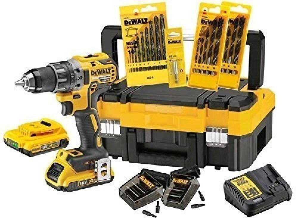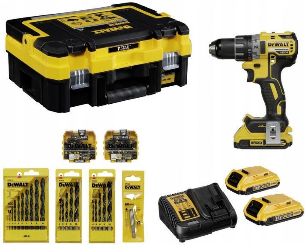 Kompaktní vrtačka/šroubovák 18 V XR Li-Ion je vybavena baterií XR Li-Ion s kapacitou 2,0 Ah a dalším příslušenstvím. Technologie bezuhlíkového motoru zaručuje vynikající účinnost. Dokonale kompaktní a lehká konstrukce umožňuje použití i na místech s omezeným přístupem. Celokovová převodovka s dvěma převodovými stupni prodlužuje provozní dobu a životnost nářadí. 15 poloh pro nastavení utahovacího momentu umožňuje stejnoměrné šroubování do různých materiálů. Konstrukce inteligentního spouštěcího spínače umožňuje maximální ovladatelnost při práci. Zdokonalená ergonomická konstrukce s gumovým povrchem rukojeti zvyšuje komfort obsluhy. Baterie typu Li-Ion umožňují vynikající nasunování a vyjímání a je opatřena indikátorem stavu nabití. Ocelová příchytka na řemen a magnetický držák nástrojů poskytují dokonalé řešení pro uložení. Součást inteligentní řady XR Li-Ion zaručuje účinnost a rychlejší provádění požadovaných úkonů. Univerzální nabíječka pro použití s bateriemi XR Li-Ion s napájecím napětím 18 V, 14,4 V a 10,8 V. Balení obsahuje: 2x akumulátor 18V/2Ah Nabíječka 1x 10-ti dílná sada vrtáků do kovu HSS-R DIN 338 DeWALT DT5911 2x 5-ti dílná sada vrtáků do dřeva DeWALT DT4535 25x bit T20 25x bit T25 1x Magnetický držák pro 25mm bity DeWALT DT7500 Háček na řemen Odolný kufr TSTAK Typ baterie XR Li-Ion Napájecí napětí 18 V Kapacita baterie 2,0 Ah Max. moment (tvrdý materiál) 70 Nm Max. moment (měkký materiál) 27 Nm Výkon 460 W Otáčky naprázdno 0 - 550/2 000 ot./min Kapacita sklíčidla 1,5 - 13 mm Max. průměr otvoru [dřevo] 40 mm Max. průměr otvoru [kov] 13 mm Hmotnost 1,5 kg Délka 173 mm Výška 203 mm Akustiský tlak 76 dB(A) Odchylka akustického tlaku 3 dB(A) Akustický výkon 87 dB(A) Odchylka akustického výkonu 3 dB(A) Vibrace ruka/paže - vrtání do kovu < 2,5 m/s2 Odchylka měření K 1 (vibrace) 1,5 m/s2 Vibrace ruka/paže - šroubování bez přírazu < 2,5 m/s2 Odchylka měření K 2 (vibrace) 1,5 m/s2 Hloubka 67 mm