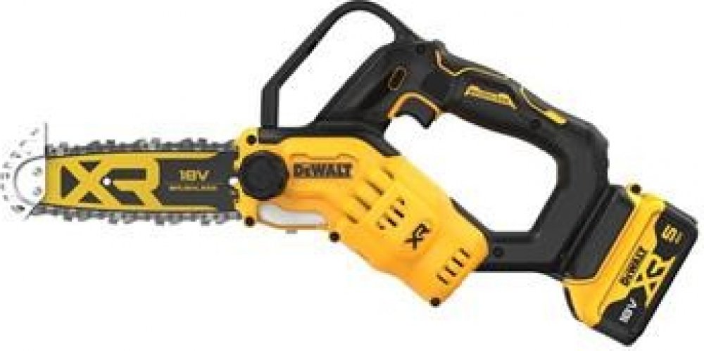 - Lehká a kompaktní akumulátorová prořezávací řetězová pila, která je součástí systému 18V XR, je vybavena vysoce účinným bezuhlíkovým motorem, jehož konstrukce maximalizuje dobu chodu, která odpovídá až 70 řezům na jedno nabití*, i životnost motoru.