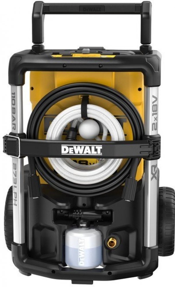 Plně akumulátorové řešení čištění – bez nutnosti elektrické nebo vodovodní přípojky. Napájení zajišťují dva 18 V XR akumulátory. Čistič si může vzít vodu z kbelíku nebo sudu na dešťovou vodu.