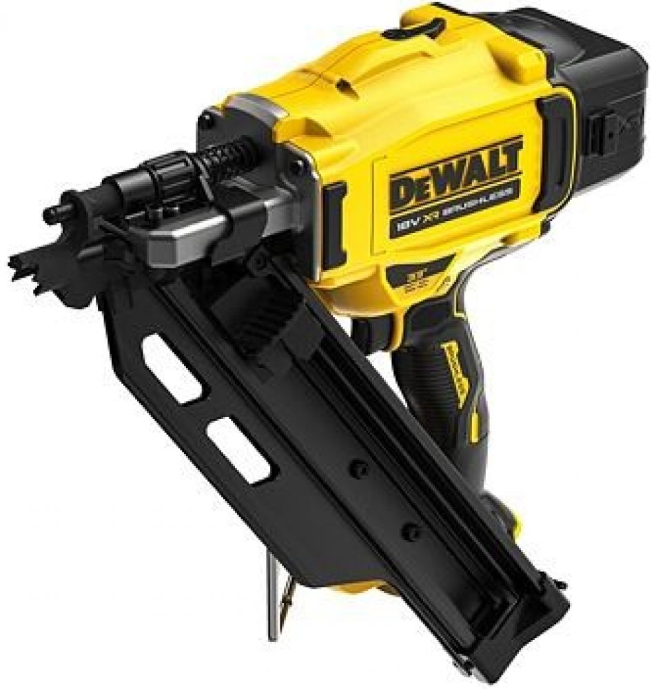 Akumulátorová hřebíkovačka 18V XR s bezuhlíkovým motorem, navržena pro tesařské práce.