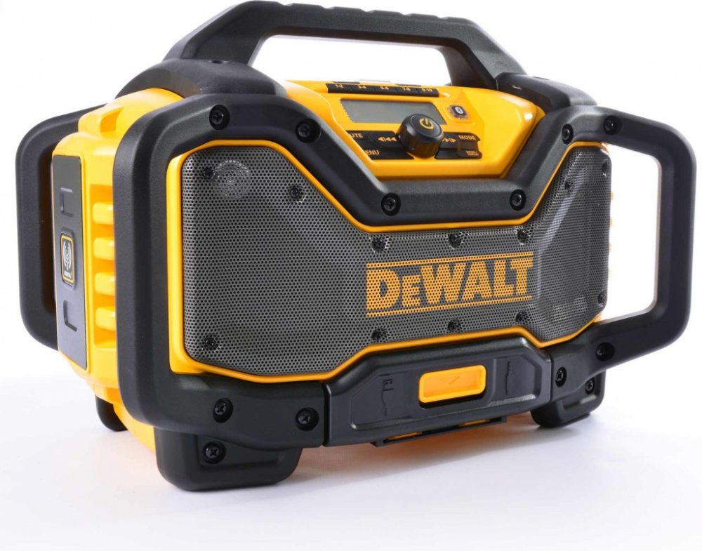 Aku rádio / nabíječka DeWALT DCR027 s příjmem analogového i digitálního signálu a napájením ze sítě a akumulátorů 10,8, 14,4 a 18V, včetně akumulátorů flexvolt.
