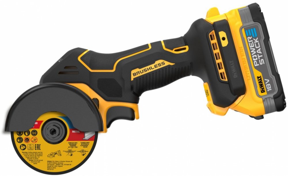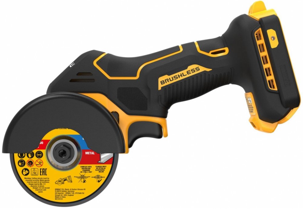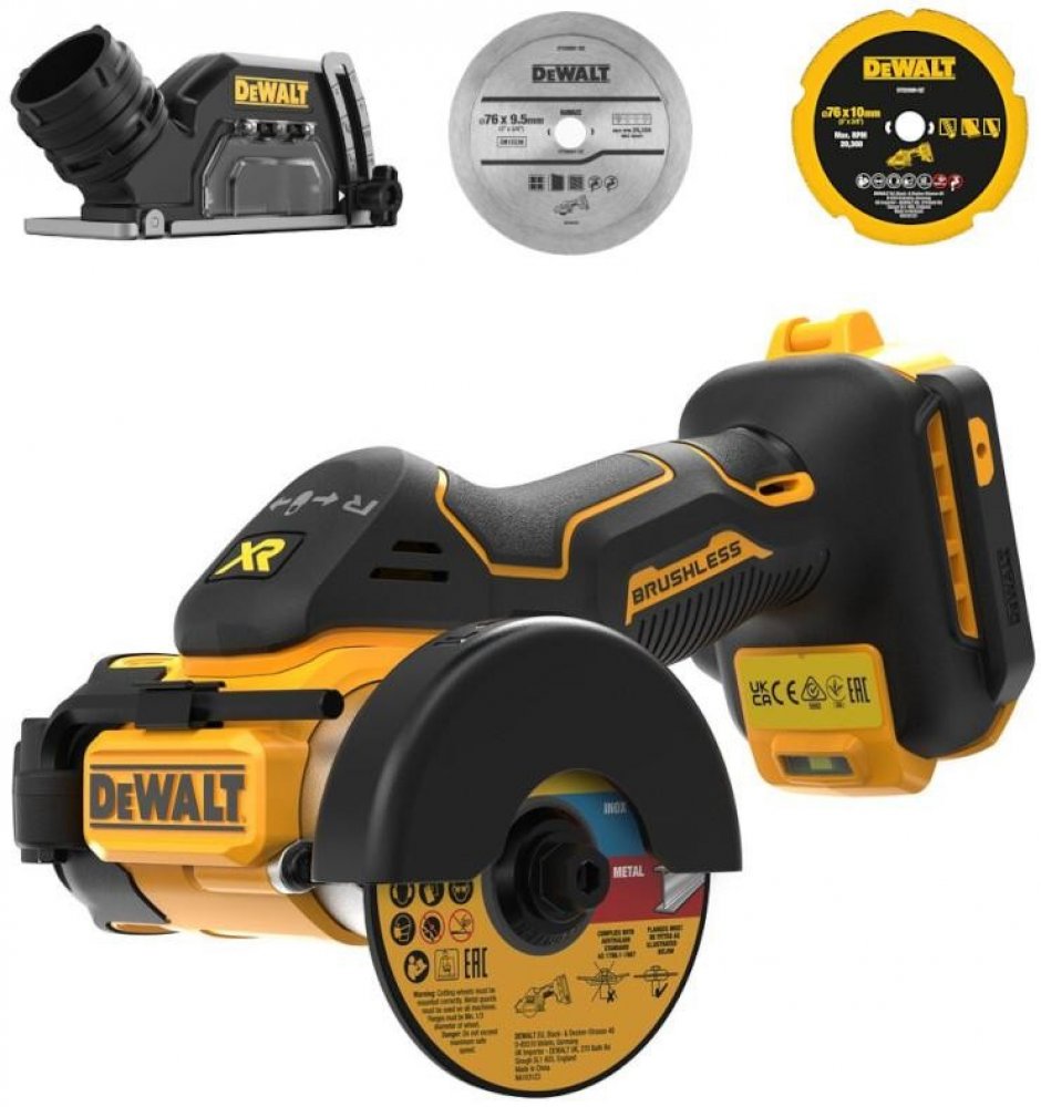 Aku rozbrušovací pila Dewalt XR DCS438N-XJ / 18 V / bez akumulátoru / M10 / bezkartáčový motor / LED světlo / 20000 ot./min. / černá/žlutá