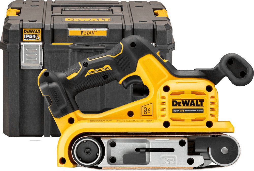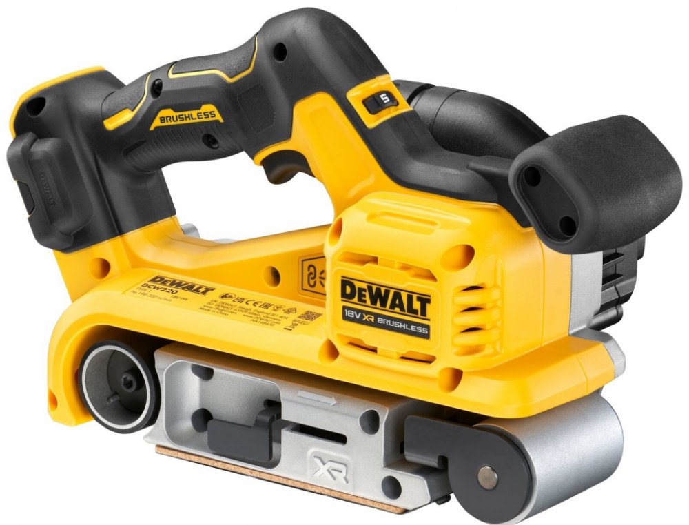 Aku pásová bruska DeWALT DCW220 je skvělým pomocníkem pro bezdrátové tesařské práce, přestavby a všeobecné stavební práce. Bruska je poháněna moderním bezuhlíkovým motorem s vysokou účinností, který zajišťuje vysoký výkon a dlouhou dobu chodu. Uplatnění tak tato bruska nalezne jak u profesionálních, tak i domácích uživatelů, kteří hledají kvalitní pásovou brusku a to bez otravného tahání napájecího kabelu. Pásová bruska je vybavena řadou funkcí, které jsou vhodné pro různé úkoly, včetně odstraňování nátěrů, mořidel, lepidel a nerovností dřeva. Také je ideální pro přípravu dřeva před mořením, nátěrem nebo instalací. S brusnou deskou o rozměrech 75 x 140 mm můžete brousit velké plochy efektivně a rychle - a bez zamotaného kabelu. Bruska je vybavena spínačem s proměnlivou rychlostí s aretací a voličem rychlosti. Tato funkce je zásadní pro přesné ovládání nástroje a přizpůsobení rychlosti brusky specifické aplikaci. Například při práci s tvrdým dřevem může být vhodné použít vyšší rychlost pro rychlejší a efektivnější odstranění materiálu. Naopak při práci s jemnými povrchy nebo křehkými materiály je vhodné zvolit nižší rychlost. Díky integrovanému Bluetooth systému Tool Control™ je možné snadno propojit pásovou brusku s kompatibilním vysavačem DeWALT. To umožňuje bezdrátové spárování vysavače s pásovou bruskou a zajistit tím automatické odsávání prachu při broušení. Výhodou je také plná kompatibilita s odsávacím systémem AirLock. Inovovaný rychloupínací systém zajišťuje snadnou výměnu brusného pásu. Tato praktická funkce umožňuje rychle a efektivně přepínat mezi různými typy brusného papíru nebo nahrazovat opotřebovaný pás novým. Bruska má také nově tvarovanou rukojeť, která je speciálně navržena s důrazem na pohodlí a praktičnost. Umožňuje obouruční práci.