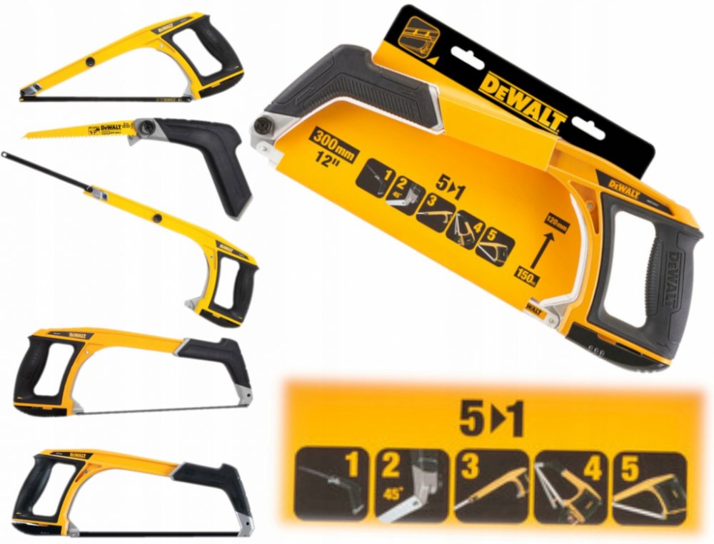 - Pevný rám pro velká pnutí drží pilový list silou až 150 kg 5v1: Velké napnutí, rezání pod úhlem 45°, rezání v omezených prostorách, nízkoprofilové rezání, ocasní pila.