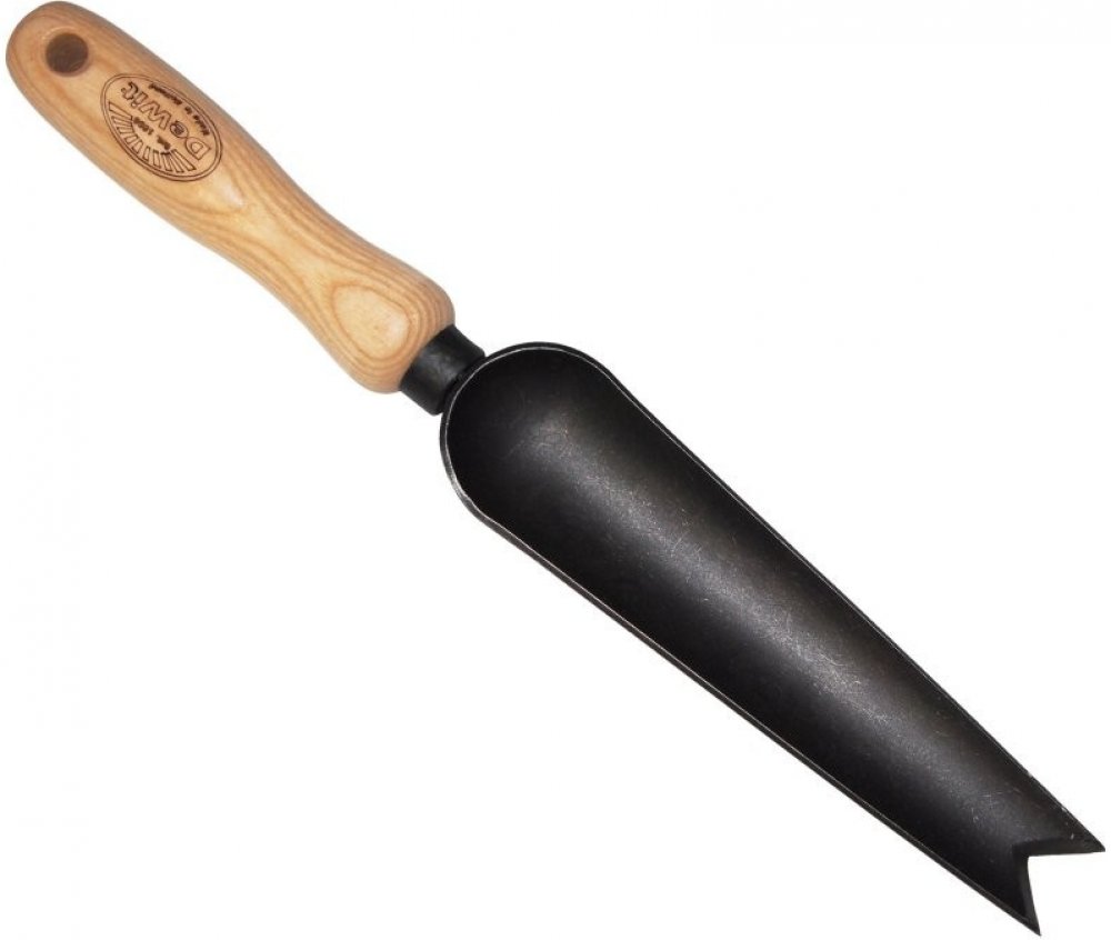 Kovaná lopatka s úzkou čepelí, která je ukončená dovnitř zkosenými hranami a díky tomu je velmi ostrá. Dokáže jednoduše vytvořit úzké díry, využijete ji hlavně při sázení. Masivní jasanová rukojeť zajišťuje pohodlné a bezpečné uchopení.