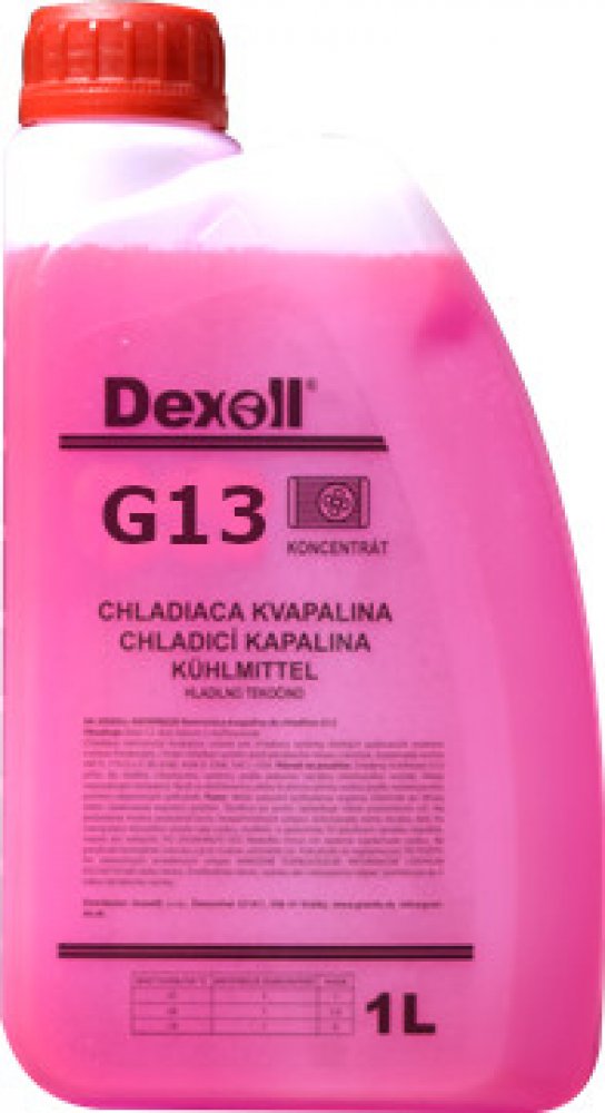 Dexoll Antifreeze G13 Popis: Splňuje normu VW TL774J. Pro použití v nejmodernějších typech spalovacích motorů na bázi hliníkových slitin. Chladicí kapalina má růžovo-fialovou barvu. Vlastnosti: Je vyráběna na etylenglykolové bázi. Obsahuje organická aditiva. Prodloužená výměnná lhůta 5 let. Po odpovídajícím naředění s vodou chrání chladicí systém před mrazem, přehřátím a dlouhodobě před korozí. Informace o ředění uvedeny na etiketě výrobku. O značce: DEXOLL je členem největší nezávislé evropské skupiny výrobců maziv a automobilových náplní. Orientace značky je zaměřená na prvotřídní kvalitu s důrazem na přírodní prostředí. Cílem je dodávat zákazníkům automobilové produkty nejvyšší kvality tak, aby byla schopna pokrýt všechny potřeby. Značka DEXOLL Vám vždy zaručí to nejlepší řešení pro Váš automobil.
