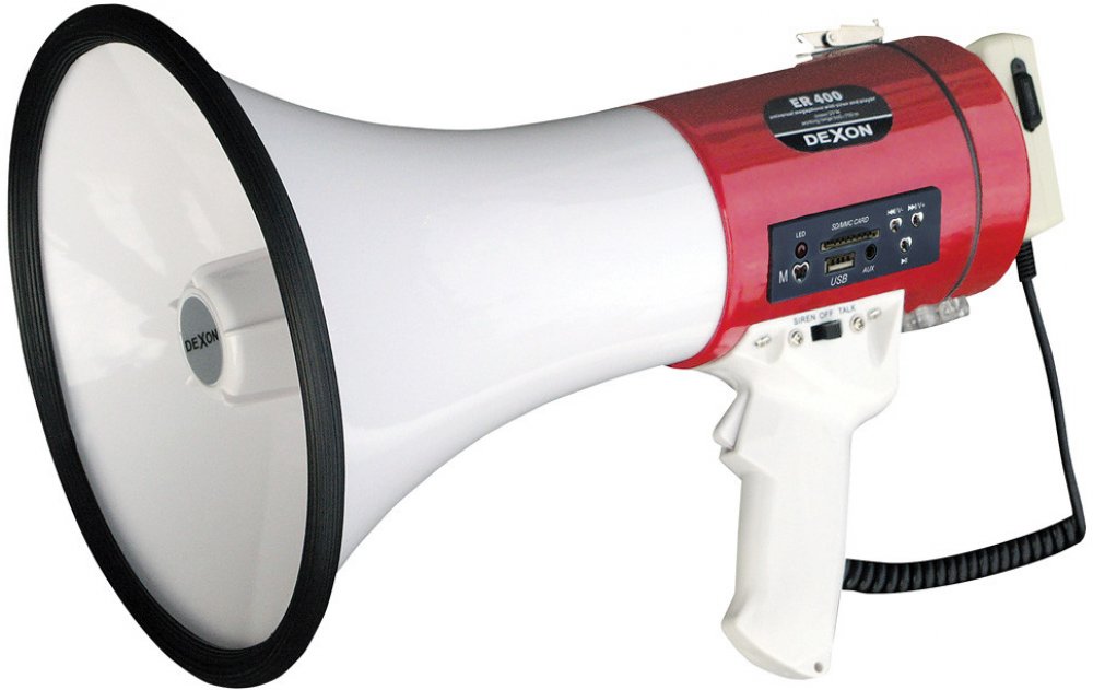 DEXON Megafon s přehrávačem ER 400, 21_974 25 W, do 500 – 700 m, přehrávač Mp3 z SD nebo USB, Bluetooth, siréna,