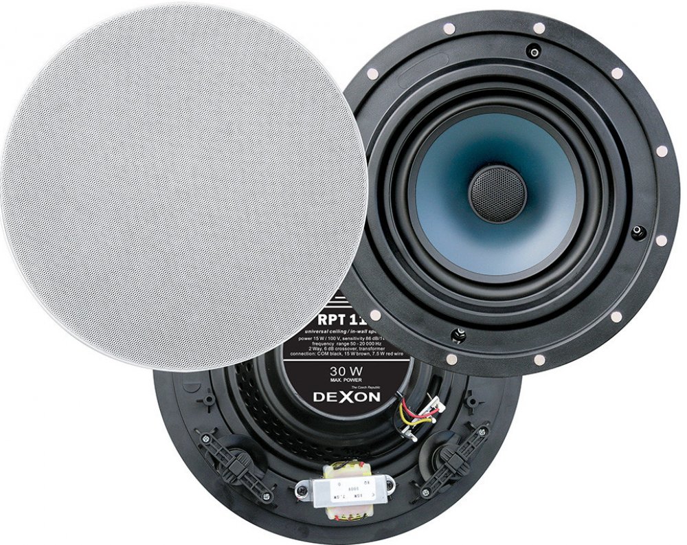 DEXON Podhledový reproduktor RPT 110, 21_998 plastový, dvoupásmový, 15 W / 100 V, 86 dB, 50 – 20 000 Hz,