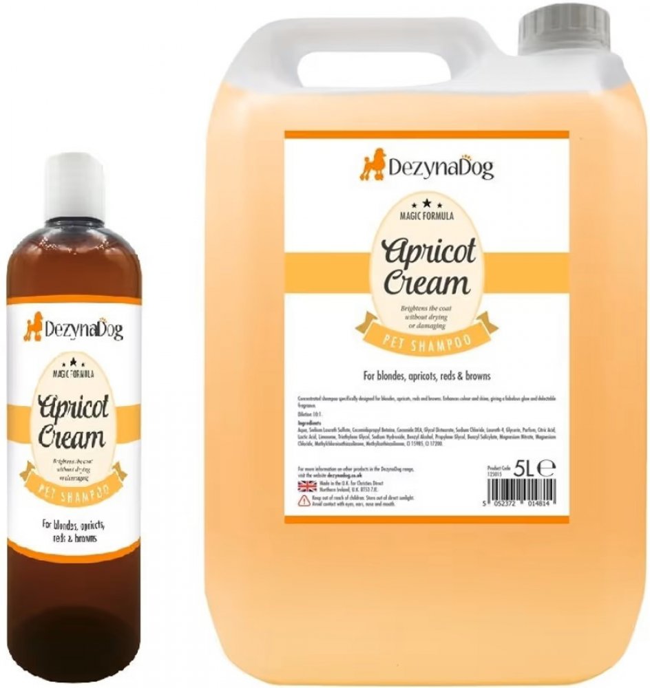 Apricot Cream není jen fantastický šampon pro zvýraznění barvy, ale také skvěle čistí srst, snadno pění a zanechává srst krásnou a svěže vonící. Tento šampon, který je součástí řady Dezynadog Magic Formula, splňuje přesně to, co je uvedeno na lahvičce!
