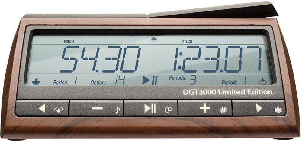 Profesionální šachové hodiny DGT3000 Limited edition s dřevěným designem schválené šachovou federací pro všechny soutěže FIDE.Pro koho? Pro pořadatele šachových turnajů i šachisty, kteří chtějí mít doma profesionální hodiny Proč? Při hraní šachů je čas důležitým aspektem, začátečníkům třeba postačí telefon s aplikací, ale pokud hraješ závodně či si chceš doma připadat jako profesionální hráč, jsou kvalitní šachové hodiny nedílnou součástí každé hry. Šachové hodiny DGT3000 Limited edition obsahují všechna potřebná nastavení na turnaje. Oproti DGT3000 šachovým hodinám mají dřevěný design, který parádně pasuje ke klasickým dřevěným šachovnicím. Jiný rozdíl mezi nimi nenajdeš. Tyto byly vyrobeny speciálně k výročí 25 let DGT. Už od začátku hry vidíš sekundy. Hodiny mají také mnohem větší displej s více informacemi. Můžeš je propojit s počítačem i digitálními šachovnicemi od DGT. Šachové hodiny mají 25 přednastavených programů a 5 vlastních nastavení. Vlastnosti: Výrobce: DGT Uložení až 25 programů 5 slotů