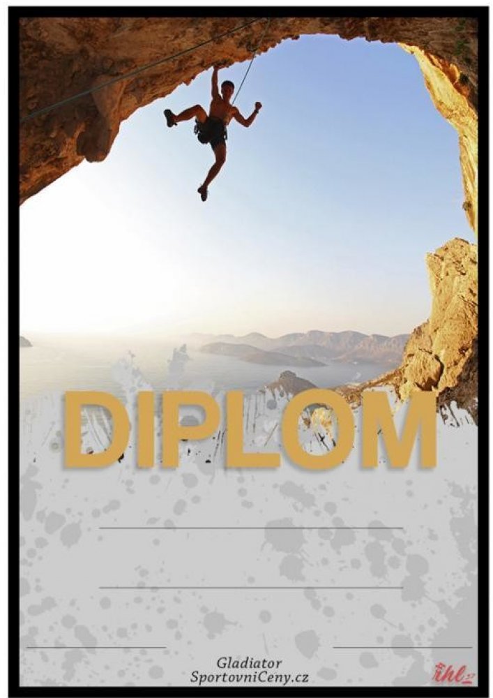 Diplom horolezectví o velikosti A4. Pro Sportovní ceny Gladiator vytvořil designér Ondřej Čada.
