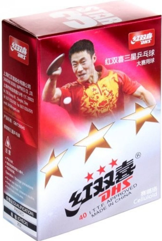 . Míčky DHS *** jsou celuloidové prvotřídní míčky od největšího světového výrobce míčků Double Happiness. Jsou vyrobeny klasickou technologií z celuloidu mají velmi dobré herní vlastnosti. Baleno v krabicích po 6 ks. Soutěžní míčky - schváleno federací ITTF.