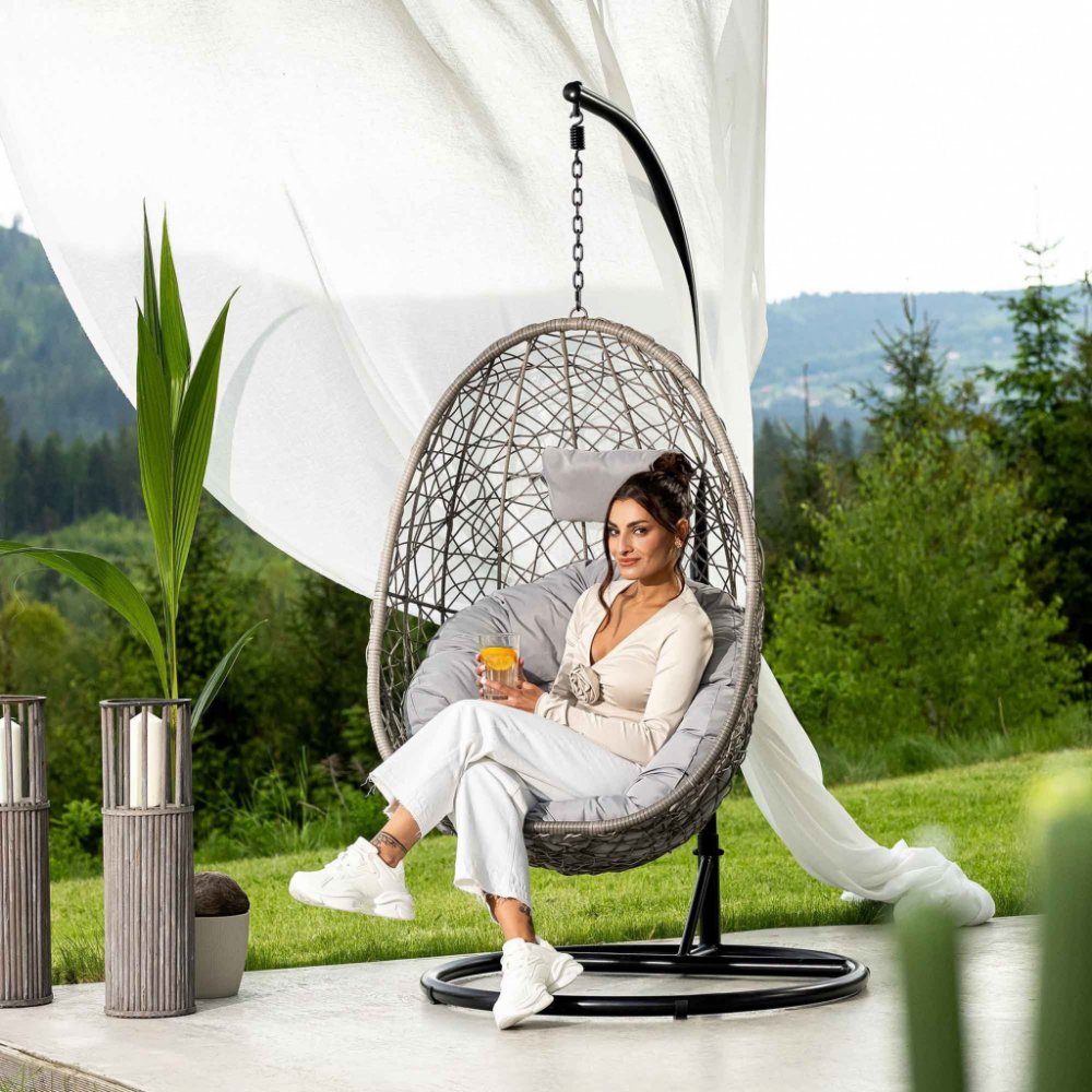 Závěsné křeslo pro jednu osobu Bacoli od di volio je houpačka, která posune vaši relaxaci na zcela novou úroveň. Díky charakteristickému zaoblenému tvaru koše a měkkému polštáři, který vyplňuje jeho vnitřní část, je křeslo Bacoli neuvěřitelně pohodlné a ergonomické. Ažurový koš je vyroben z pevného a povětrnostním vlivům odolného technorattanového výpletu s nepravidelnou vazbou. Výplet je velmi pevný, ale zároveň pružný, takže se přizpůsobí tvaru vašeho těla. Stabilní kovová konstrukce zajišťuje bezpečné používání. Závěsné křeslo můžete postavit venku - na zahradě, na terase či balkoně, nebo i doma, stejně jako ho zavěsit ke stropu v místnosti.Odolná konstrukceKonstrukce závěsného křesla je dobře vyvážená a pevná, a proto bezpečná. Křeslo je zavěšeno na kovovém rámu s práškovým nástřikem, který zajišťuje jeho antikorozní vlastnosti. Koš je ručně vypletený z technorattanu, který se vyznačuje vysokou odolností vůči vlhkosti, změnám teplot a UV záření. Technorattanový výplet byl zpevněn kovovými prvky, díky nimž je koš pevný a udržuje si svůj tvar. Křeslo je zavěšeno za pružinu, která tlumí pohyb a činí konstrukci pružnou, takže se při sezení v kokonu můžete příjemně pohupovat a kolébat.Impregnovaný polštářVnitřek zahradního křesla je vyložen nadýchaným, měkkým polštářem, který dá vám pocit pohodlí a pohody - jako byste se vznášeli v oblacích. Kromě velkého polštáře je součástí balení také menší polštářek, který podepře vaši hlavu a krk. Polštářek má šňůrky, takže jej můžete upevnit v jakékoli výšce, která vám vyhovuje. Čalounění z vysoce kvalitní látky je příjemné na dotek a díky impregnaci navíc chráněné proti nepříznivým účinkům vlhkosti a pronikání vody do struktury látky.Možnost skládáníZávěsné křeslo Bacoli je navzdory svým rozměrům lehké díky proplétanému koši z technorattanu. Možnost odpojit koš od rámu umožňuje zahradní houpačku složit, a také usnadňuje přemístění křesla na jiné místo - domů, na zahradu, terasu nebo balkon. Široká stabilní základna kovového rámu je opatřena plastovými kryty, které křeslo dále stabilizují a při přemisťování chrání rám i podlahu v místnosti před poškrábáním. Koš můžete také zavěsit na háček připevněný ke stropu. Závěsné křeslo unese zátěž až 100 kg.SpecifikaceZnačka: di volioModel: BacoliBarva: Šedo/šedáPočet osob / míst: 1-místnéMateriálPotahy na polštář: 100% polyesterOcelTechnorattanPolštář: Vysoce kvalitní impregnovaný materiálRozměryCelková výška: 191 cmRozměry koše: šíř: 81 cm / výš: 110 cm / hl: 65 cmPrůměr základny: 97 cmPrůměr profilu rámu: 4 cmRozměry polštářů: 120 / 110 cmDélka řetězu (včetně pružiny): 33 cmMaximální zatížení: 100 kgHmotnost produktu: 23 kgDodatečné informaceSoučást vybaveníPolárová dekaChrániče proti poškrábání podlahyUrčeníPro domácí použitíPro svépomocnou montážDalší informaceVzhledem k vlastnostem materiálu ratanu a polštářů je rozměrová tolerance +/- 5%