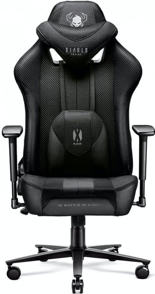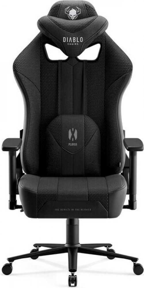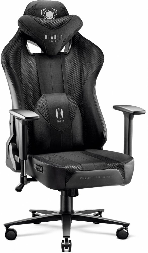 LÁTKOVÉ HERNÍ KŘESLO DIABLO X-PLAYER 2.0 ČERNÁ: KRÁLOVSKÁ VELIKOSTMáte před sebou inovativní herní židli Diablo X-Player, která je vyrobena z látky. Pokud hledáte spolehlivého společníka pro každou hru, který dokonale podpoří vaše držení těla a šikovně se přizpůsobí vaší siluetě a každému jejímu pohybu, měli byste se na tento výjimečný model podívat blíže.PODPORA DRŽENÍ TĚLADíky tvarované opěrce hlavy zaujmete bezpečnou a ergonomickou polohu pokaždé, když zakloníte hlavu. Vyhnete se škodlivému předklonění krku a vaše krční páteř bude dokonale chráněna před vznikem nebo zhoršením posturálních vad. Ergonomický bederní polštář zajišťuje správnou polohu dolní části zad. Díky tomu je sezení mimořádně pohodlné a bezpečné pro vaši páteř. Výplň z paměťové pěny v opěrce hlavy a bederním polštáři se přizpůsobí tlaku a přirozeným konturám vašeho těla a po vstání ze židle se vrátí do původní polohy. Pružnost pěny zaručuje ergonomii a naprosté pohodlí.SPOLEHLIVÉ MATERIÁLYOdolná síťovina Diablo Honeycomb™ a tkanina EcoFiber™ vytvářejí výjimečně vzdušné čalounění, které vám pomůže zabránit škodlivému přehřátí i v těch nejteplejších dnech. Boky sedáku a opěráku jsou potaženy hladkou a oděruvzdornou ekokůží HDS™, která židli dodává velmi osobitý vzhled. Silné prošití Nylon™ LV3 zajišťuje správné napnutí čalounění, takže si sedačka Diablo X-Player zachová svůj vynikající vzhled po mnoho let. Díky HR pěně, která vyplňuje celou pevnou konstrukci sedáku, je sedák Diablo X-Player mimořádně pohodlný a měkký. Široký sedák Dual Layer™ je vyroben z dvojité vrstvy pěny, která zaručuje výjimečné pohodlí, důležité zejména při dlouhých hodinách práce, studia nebo hraní her.MONTÁŽNÍ BALÍČEKSystém Butterfly Tilttech™ umožňuje jemně nastavit výšku sedadla pro ještě větší pohodlí během hraní a zaujmout přirozenou a ergonomickou polohu. Pěnové područky Armtech™ Hybrid SoftTouch lze nastavit ve třech úrovních tak, aby vyhovovaly vaší výšce a délce paží. Správné nastavení zajistí pohodlí, podepře vaše ramena, předloktí a zápěstí a stabilizuje celé vaše držení těla. Mechanismus Tilttech™ Gear umožňuje nastavit úhel opěradla a vestavěný systém Tilttech™ Swing vám dává možnost relaxačního houpání v křesle. Čeká na vás pohodlí a potěšení!PRVNÍ BÁZEDíky robustní pětihvězdičkové základně je poloha sezení vždy zcela bezpečná a stabilní, a to i při houpání nebo energickém pohybu. Gumová kolečka PFC™ 360 chrání povrch podlahy před poškrábáním a dodávají židli potřebnou mobilitu. Díky zvedacímu mechanismu Air Damper™ System je židle výjimečně měkká a pohodlná. Správné polstrování zajišťuje pohodlí při každé hře i při každodenní práci nebo studiu. Židle Diablo X-Player ve verzi KING SIZE je nepostradatelným společníkem každého hráče. Tato inovativní herní židle vám poskytne zdravotní komfort přizpůsobený vaší postavě a aktivně se postará o vaši bezpečnost. Dovolte jí, aby proměnila vaši každodenní práci nebo studium i každou hru. Podrobnosti na Rozměry