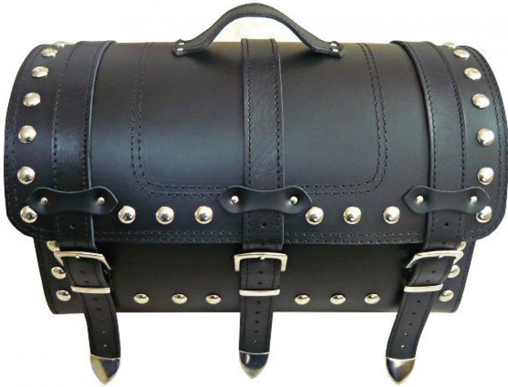 - materiál: 2,2-3 mm silná hovězí kůže - rozměry: délka 50 cm, výška 30 cm, šířka 25 cm - objem cca 35 litrů - kufr lze přenášet pomocí držadla v horní části - boční stěny kufru jsou vyztuženy plastem - pro perfektní držení tvaru - kvalitní robustní kování (chromováno) - zdobeno chromovanými nýty - vnitřní popruh pro zajištění přepravovaných věcí - popruhy pro uchycení kufru na motocykl jsou součá...