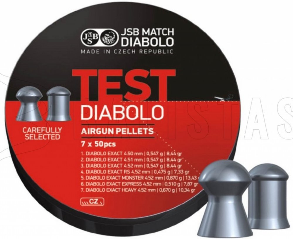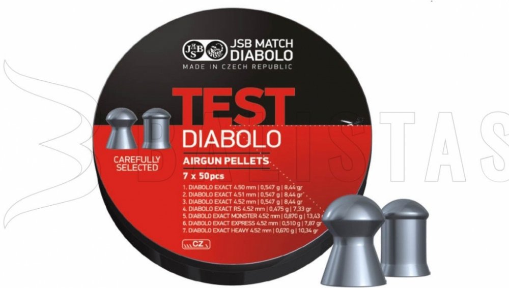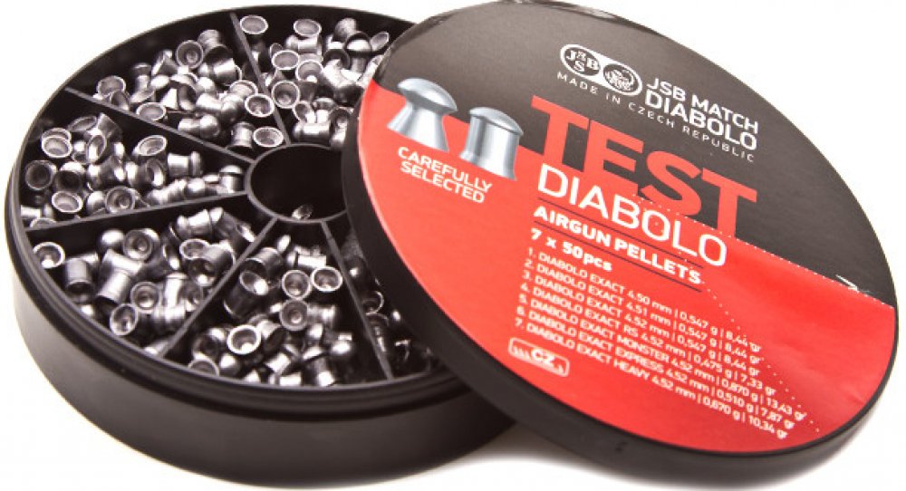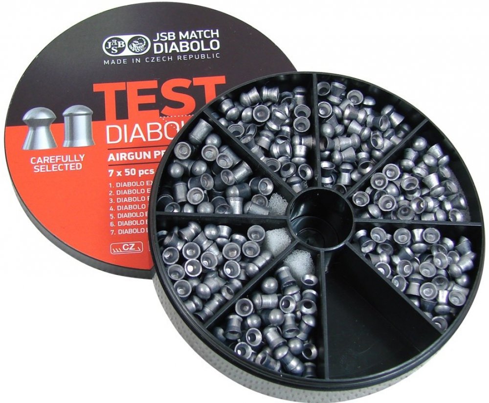 Testovací sada na vzduchovou zbraň pro terčovou střelbu, která obsahuje 7 variant diabol, celkem 350ks.
