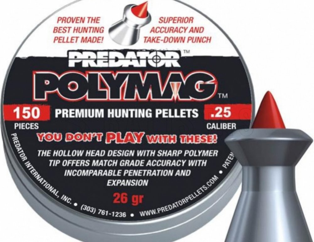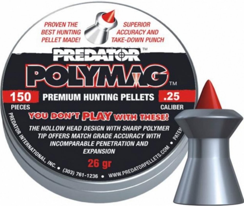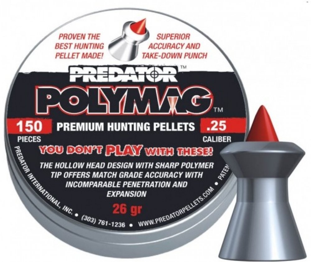 Diabolky Predator Polymag 6.35 mm JSB® / 150 ks jsou kvalitní diabolky se speciálním polymerovým hrotem pro maximální přesnost a průraznost. Diabolky vznikají ve spolupráci s americkým partnerem, který drží patent na střely s polymerovým nebo kovovým hrotem.