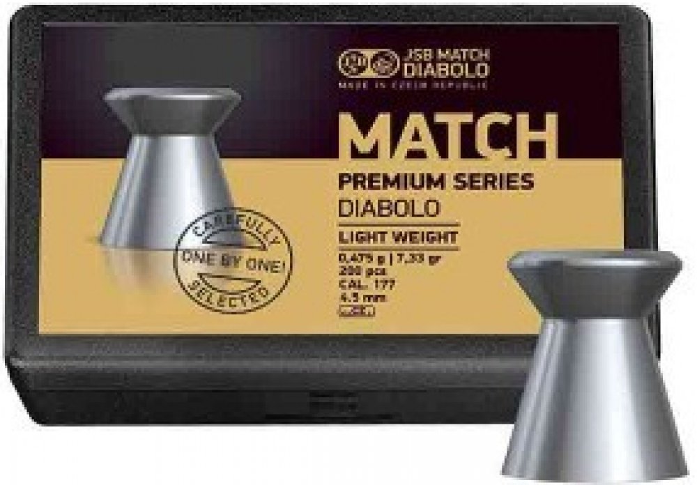 Diabolo Match Heavy JSB Schulz 200 ks cal. 4,48 mm Premium, je nejvyšší řada střeliva JSB. Jedná se o ručně kontrolované střelivo, které je baleno tzv. One By One, jednotlivě, odděleně. Stejná hmotnost každého kusu diabolky je s přesností na 0,001g. Diabolo JSB Premium Match Heavy, jsou velmi přesné diabolky. Toto střelivo je určené pro zkušené střelce. Diabolky jsou balené po 200 kusech. Hmotnost balení je 0,535g.