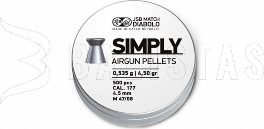 Diabolky Simply jsou vyráběny ve dvou různých variantách a to o váze 0,535 g a 0,520 g. Průměr diabolek je 4,50 mm. Při výrobě je použitá stejná technologie jako u jiných produktů firmy JSB. Hlavička diabolky je plochá a tudíž vhodná na přesnou terčovou střelbu na kratší vzdálenost. Primárně se diabolky s plochou hlavičkou používají na vzdálenost 10 m. Simply jsou také ideální volbou pro závodní s...