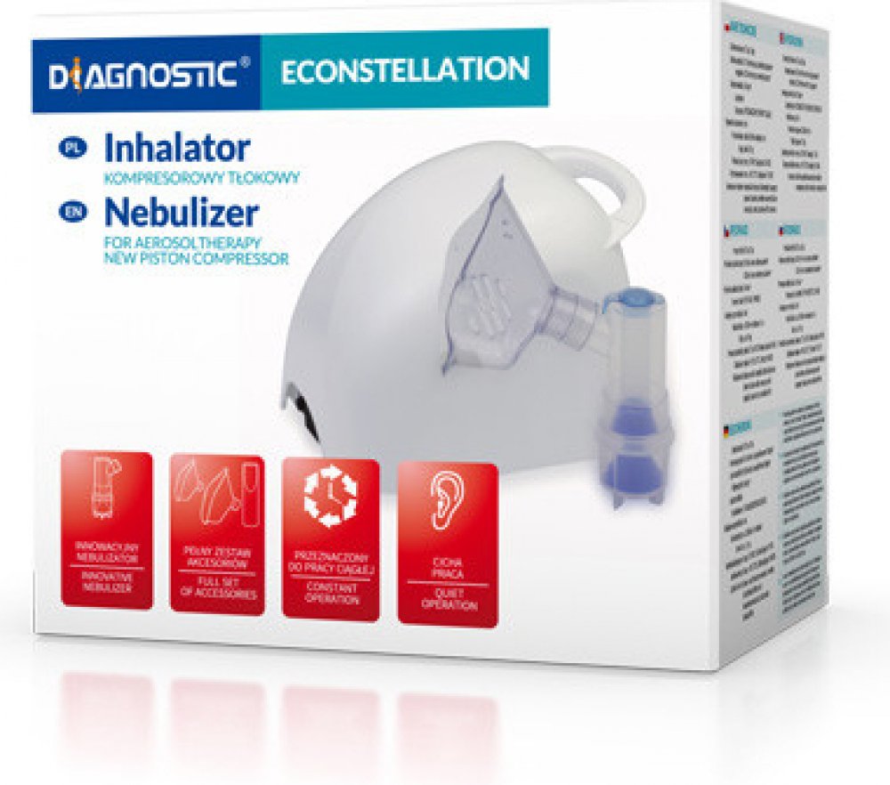 Inhalátor Diagnostic ECONSTELLATION, maska pro děti a pro dospělé, náustek, nosní vidlice pro děti a dospělé, filtr, sada pro regulaci částeček aerosolu