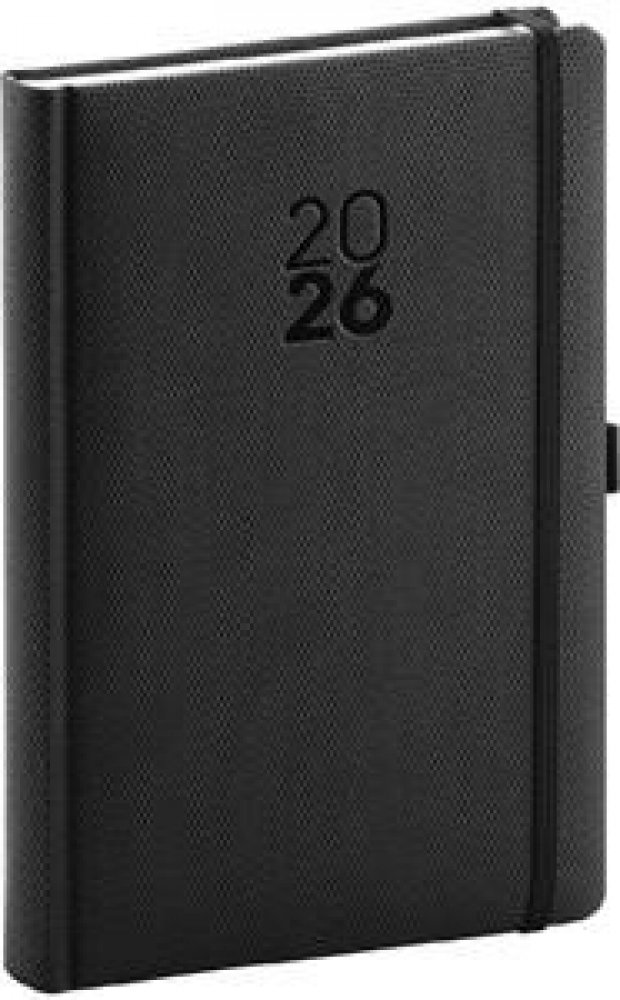 Denní diář Diamante 2026 v černé barvě. Povrch diáře má jemnou strukturu připomínající výbrus diamantu a je ideální pro všechny typy ražeb. Diář má zakulacené rohy, poutko na tužku a elastickou gumičku. Denní rozvrh s česko-slovenským kalendáriem a doplňkovou angličtinou, němčinou, maďarštinou a ruštinou. • kalendárium od prosince 2025• měsíční plánovací kalendář 2026 • měsíční plánovací kalendář ...