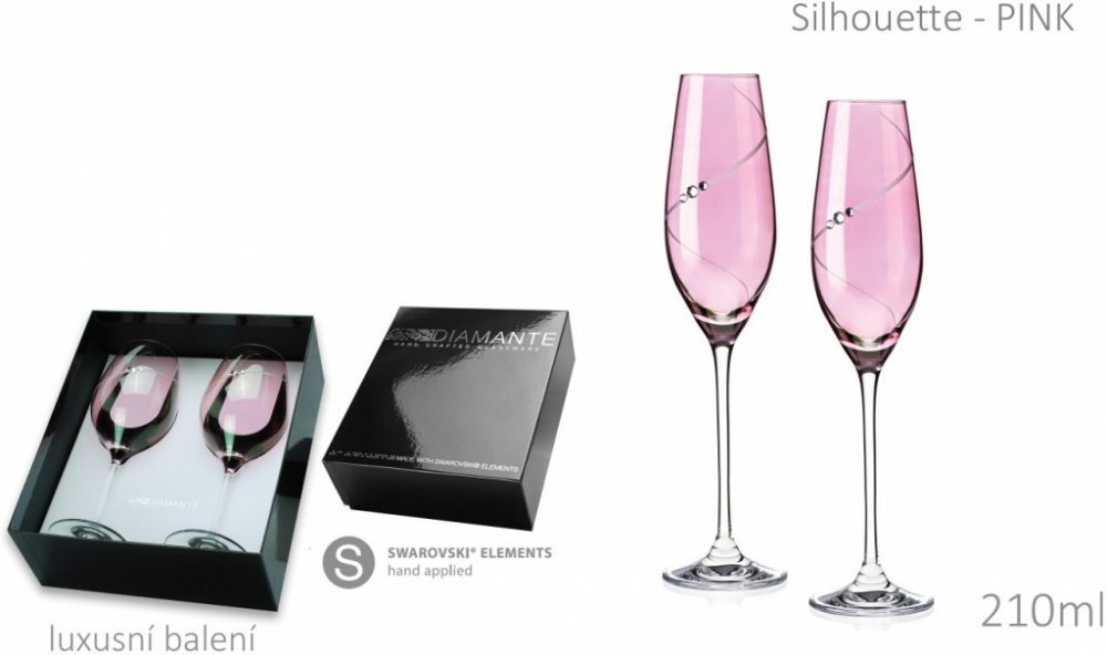 Diamante Sklenice na sekt Silhouette PINK 2 x 210 ml