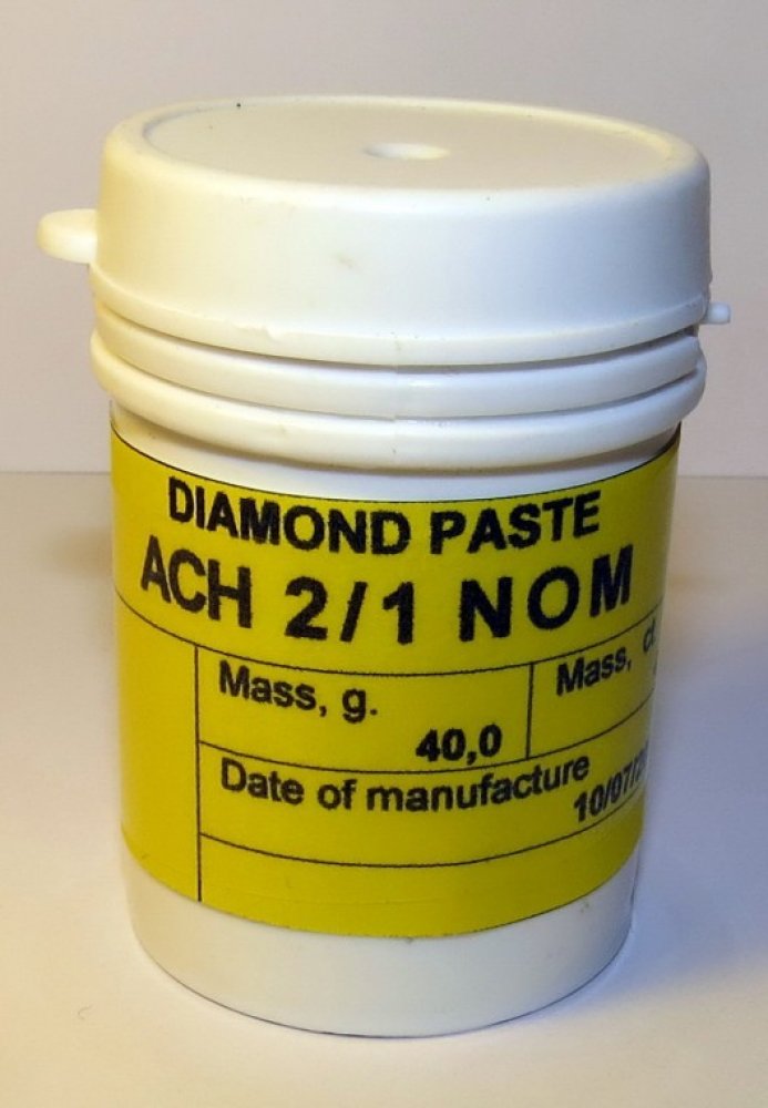 Zrnitost diamantové pasty: 125/100; 100/80; 80/63; 60/40; 40/28; 28/20; 20/14; 14/10; 10/7; 7/5; 5/3; 3/2; 2/1; 1/0; 0,5/0